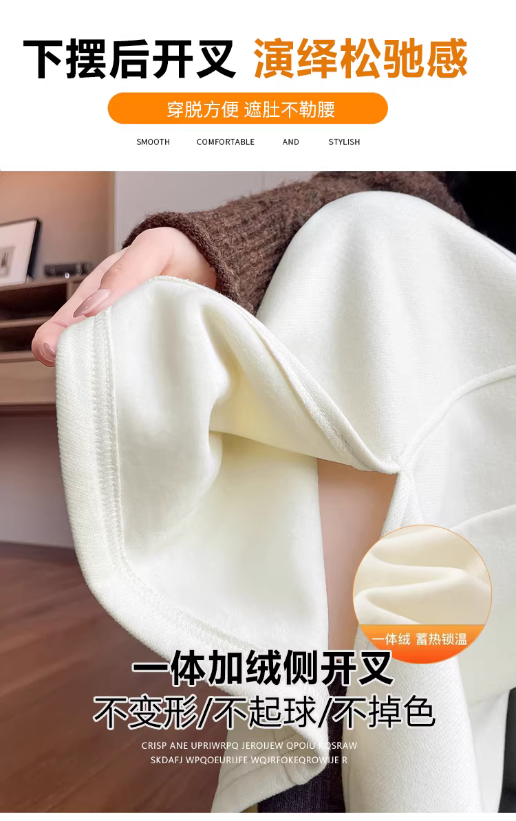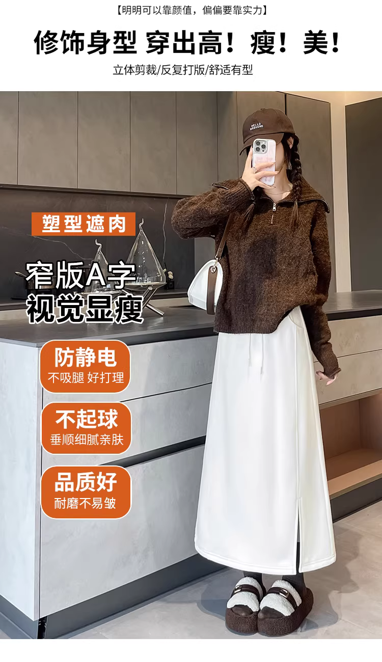 - Váy midi cashmere màu trắng nhạt dành cho nữ, mùa thu đông, váy chữ A, váy nửa thân lót lông cừu và dày dặn, váy dài.