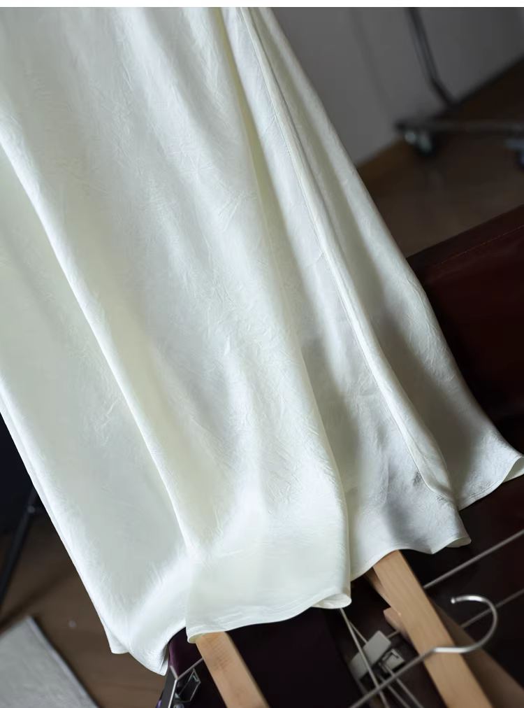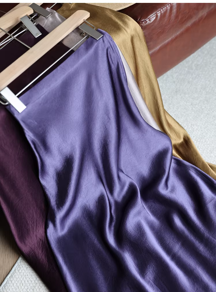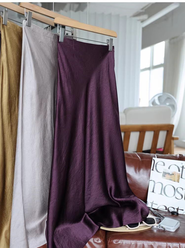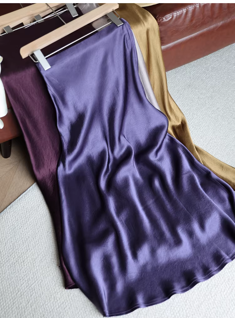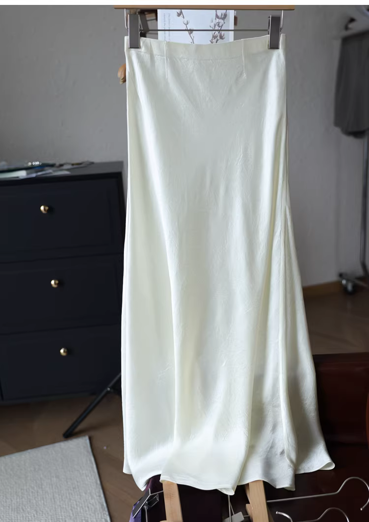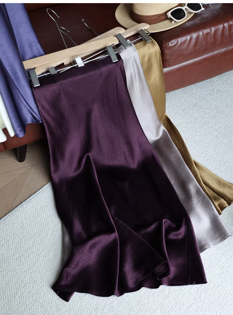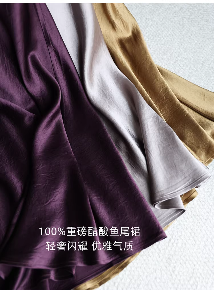 Váy midi đuôi cá chất liệu acetate dày dặn, kiểu dáng tối giản, chất liệu satin nhăn, lưng thun, dành cho nữ, mùa hè mới