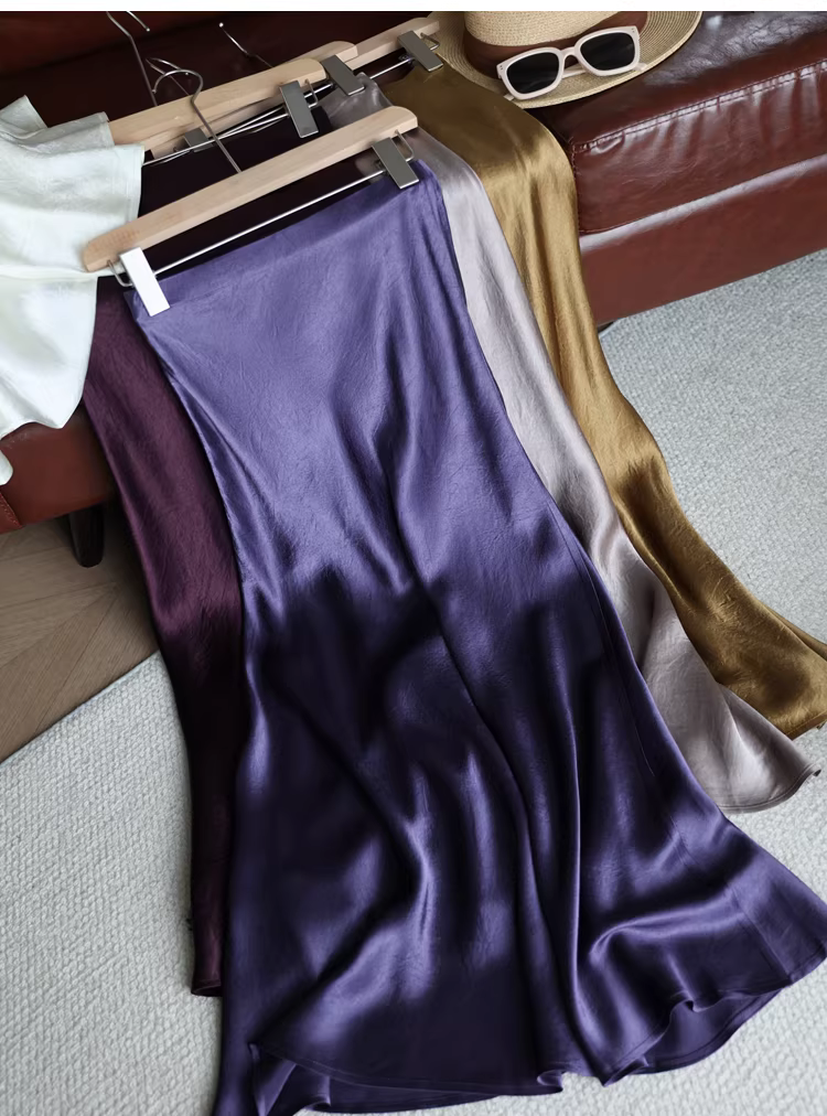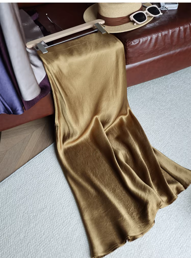 - Váy midi đuôi cá chất liệu acetate dày dặn, kiểu dáng tối giản, chất liệu satin nhăn, lưng thun, dành cho nữ, mùa hè mới