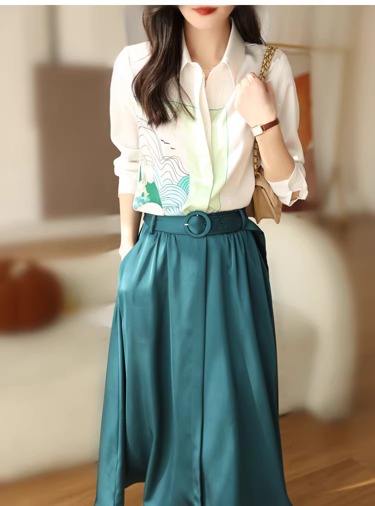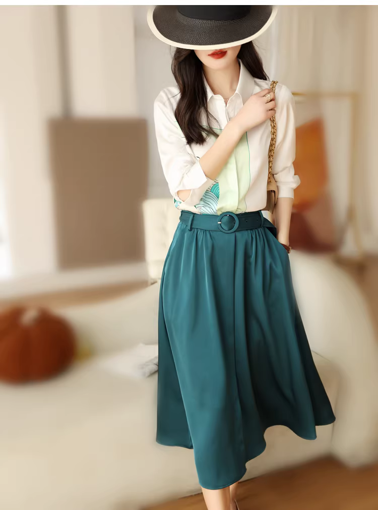 - Váy midi satin màu xanh chim công cao cấp, tôn dáng, dành cho nữ mùa xuân