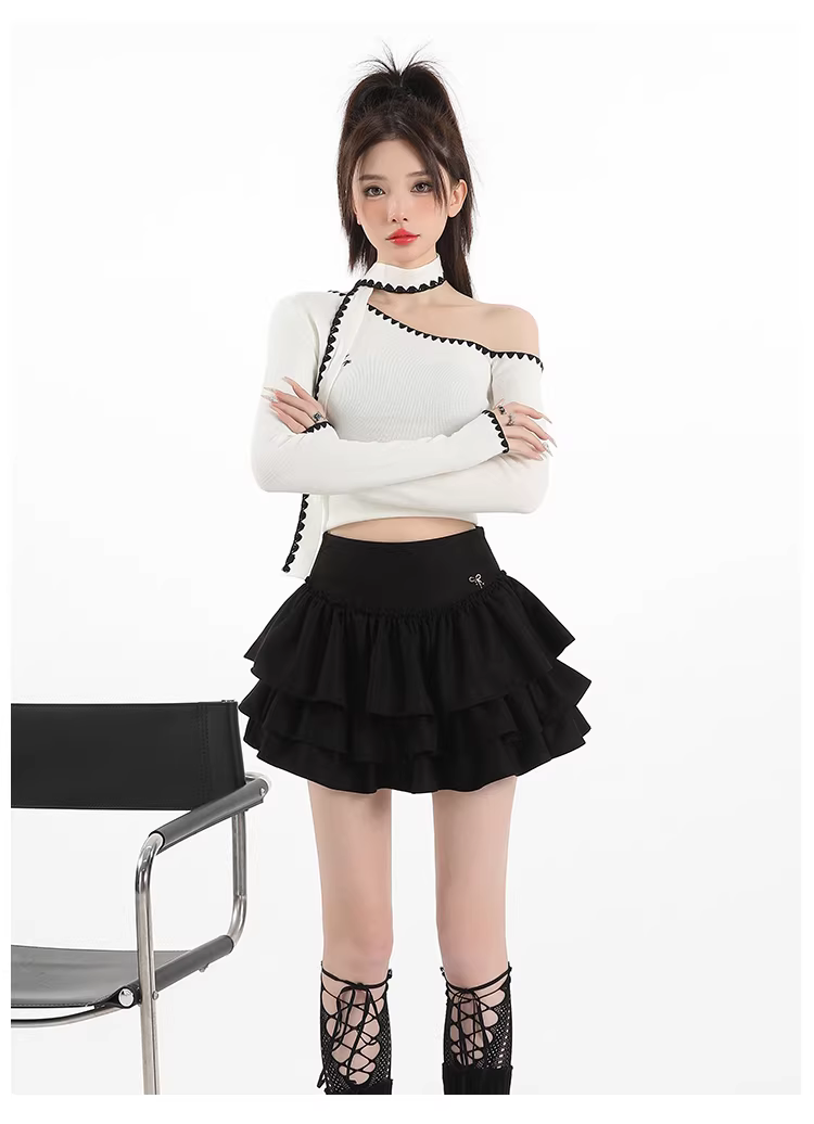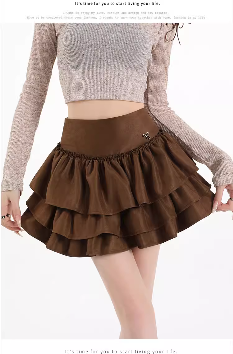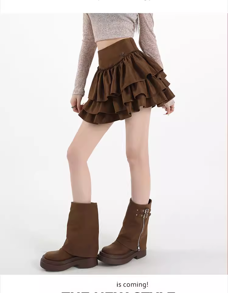 - Váy ngắn da lộn nâu La Chapelle dành cho nữ, mẫu mới thu đông 2025, cạp cao, dáng chữ A, xòe bồng bềnh