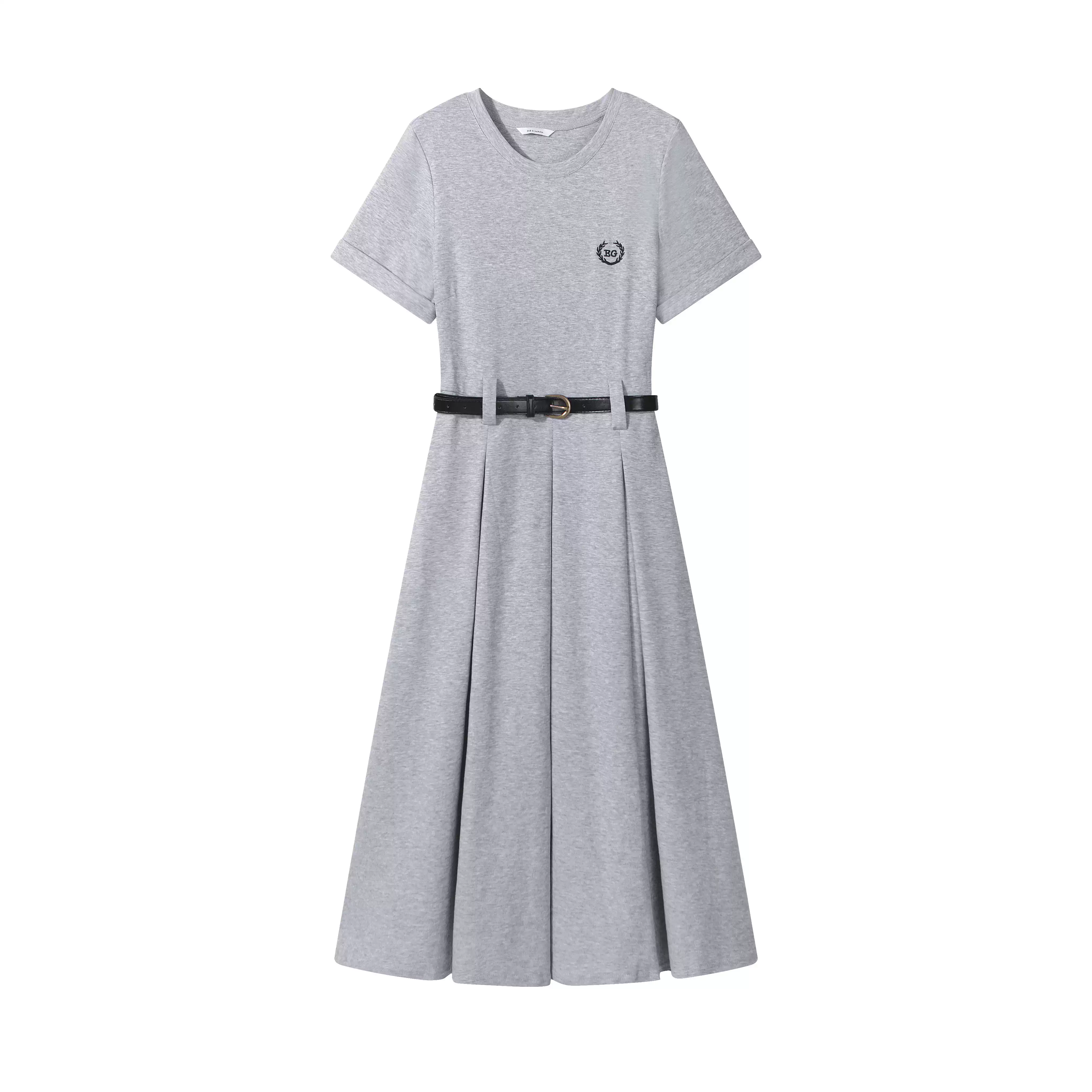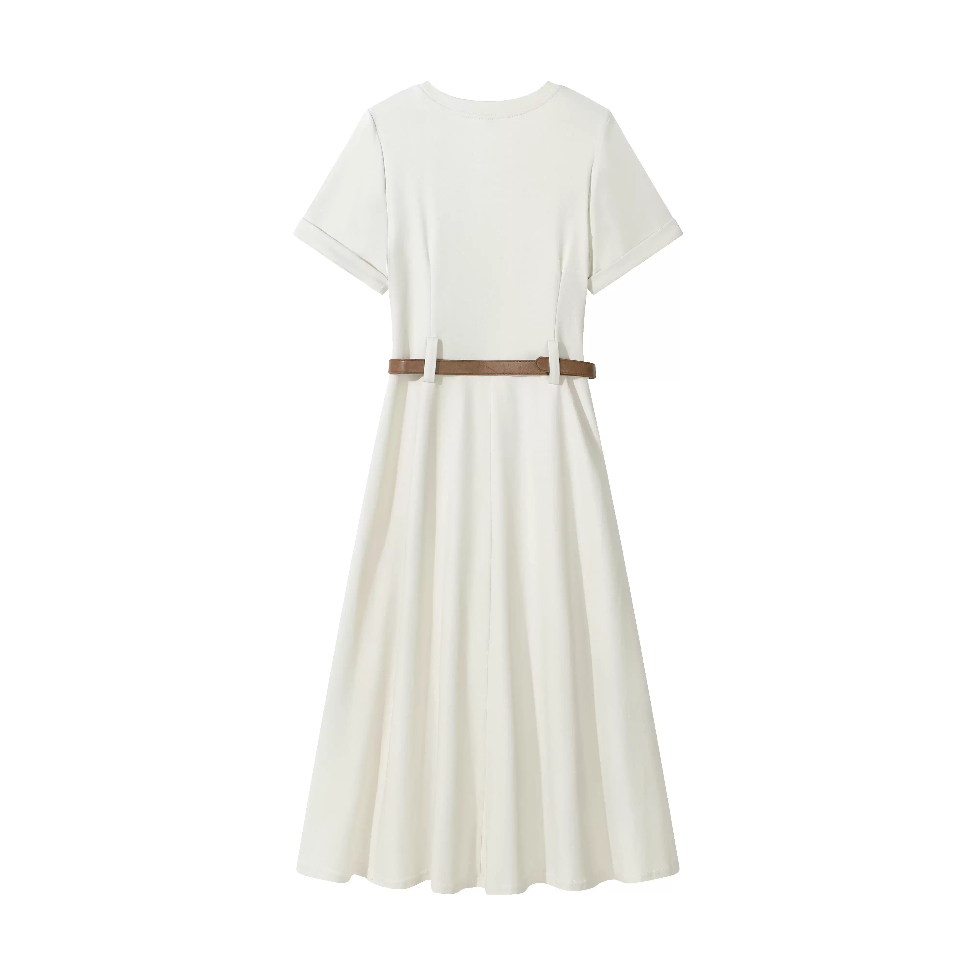Váy ngắn tay kiểu Hàn Quốc dễ thương dành cho nữ mùa hè 2025 kiểu mới, có dây lưng eo, phối áo thun, chân váy dài
