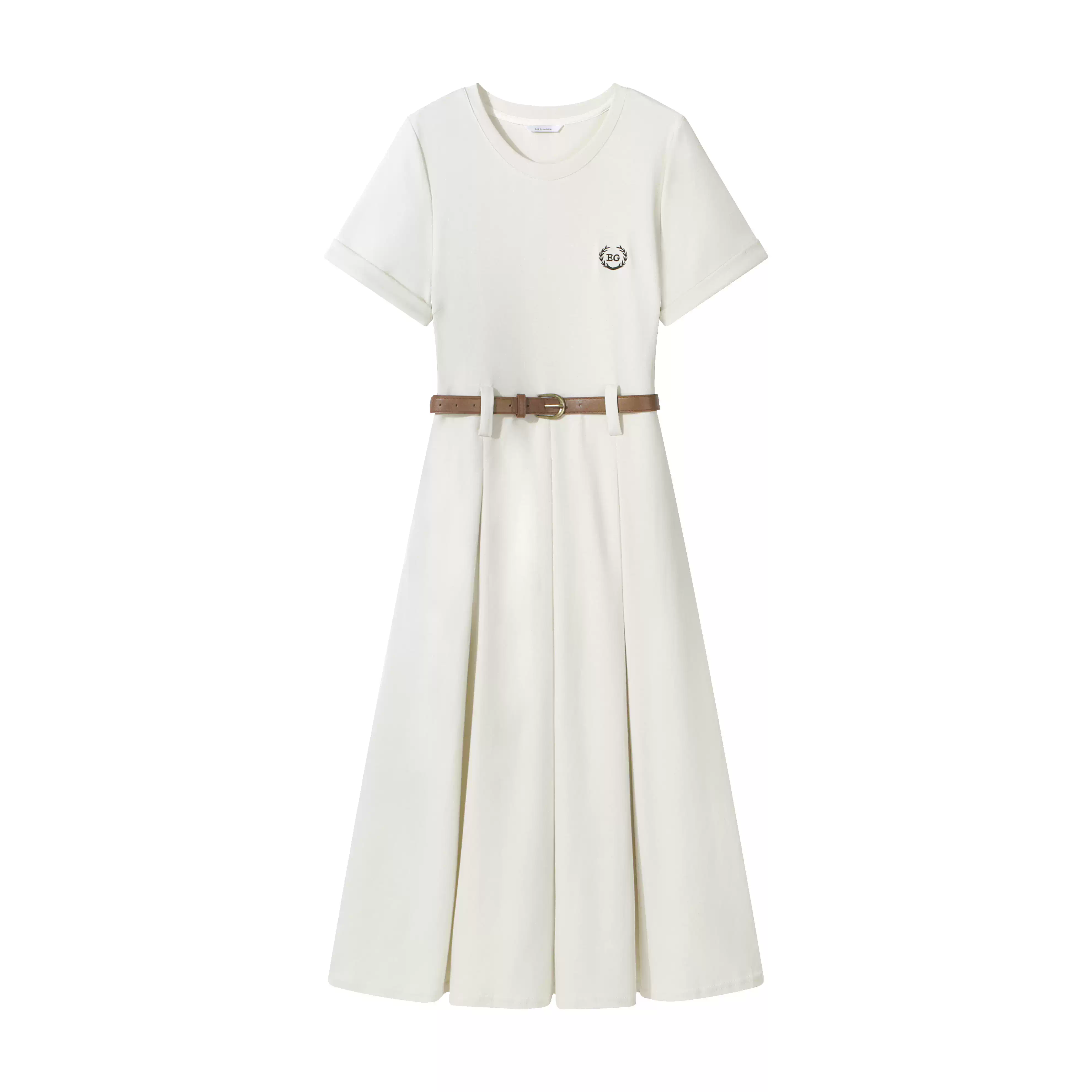 - Váy ngắn tay kiểu Hàn Quốc dễ thương dành cho nữ mùa hè 2025 kiểu mới, có dây lưng eo, phối áo thun, chân váy dài
