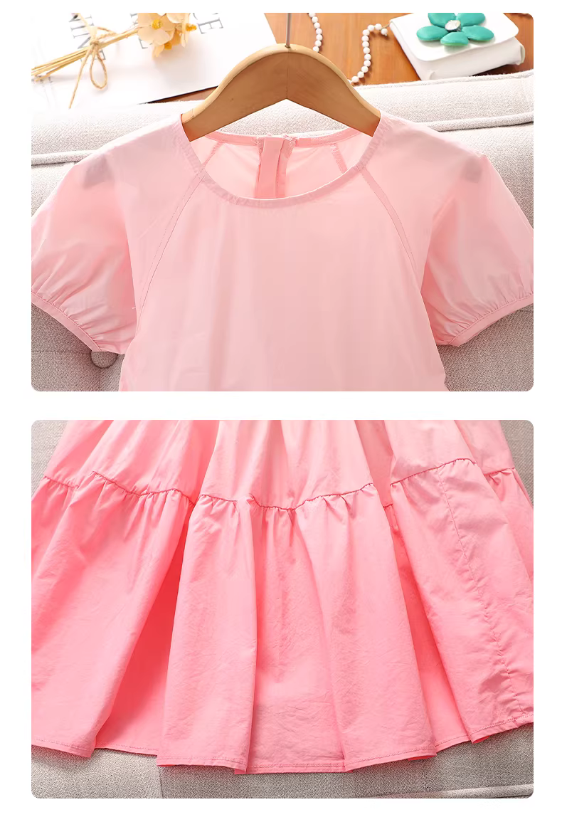 - Váy ngắn tay phối màu mùa hè cho bé gái, váy mùa hè 2025, váy cotton trẻ em mới, váy công chúa thời trang cho bé gái