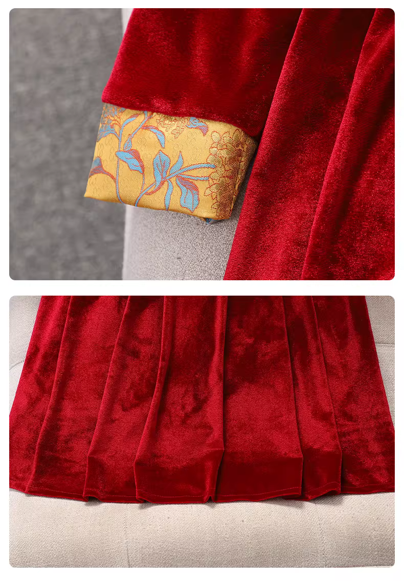 Váy nhung kiểu Trung Hoa cho bé gái, kiểu mới thu đông 2025, trang phục Tết đỏ kiểu áo Tang cho bé gái, váy áo kiểu vest trẻ em
