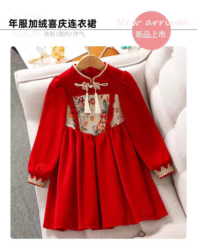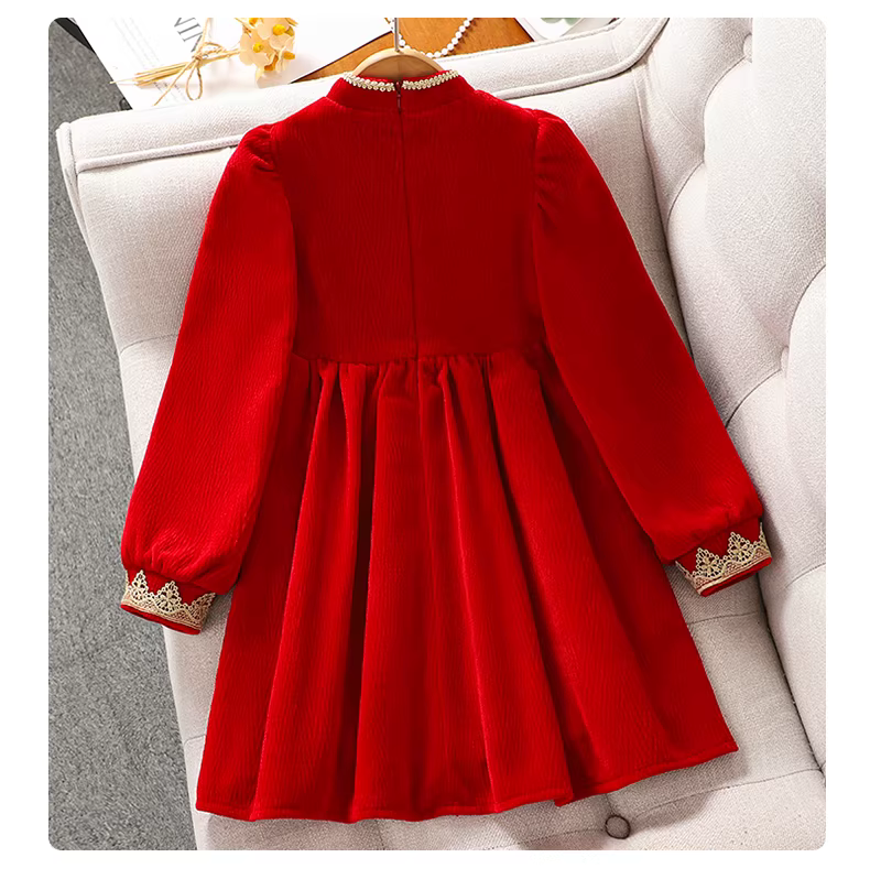 - Váy nhung thu đông bé gái, quần áo Tết trẻ em, quần áo mùa đông, quần áo Tết đỏ, váy Tết bé gái, váy