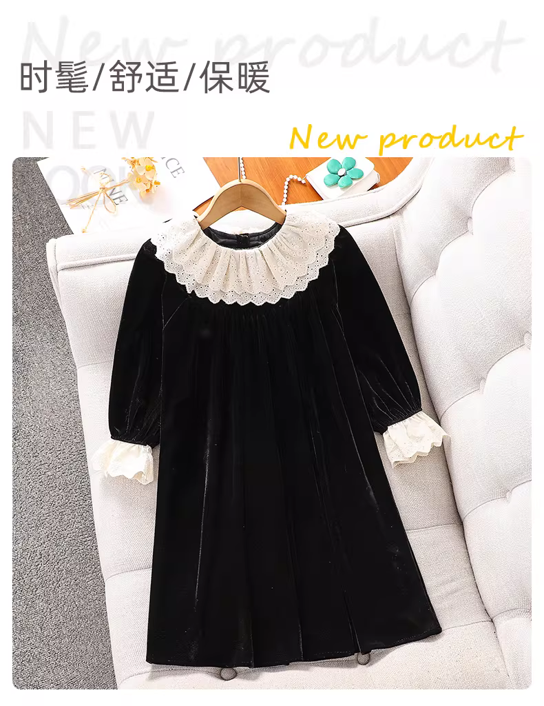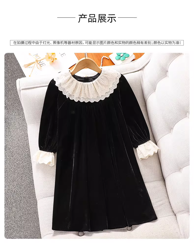 - Váy nhung thu đông cho bé gái, váy công chúa đen kiểu Pháp cho trẻ em, váy nhung ren cho bé gái lớn