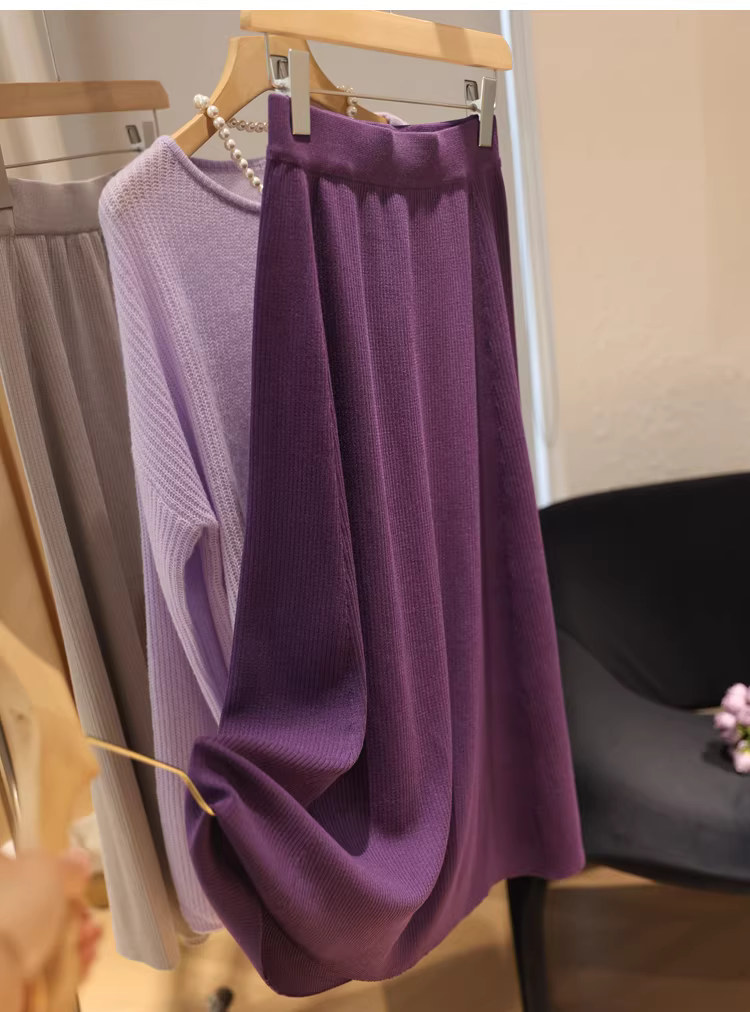 - Váy nửa thân dáng xòe cao eo, chất liệu dệt kim gân, kiểu dáng thanh lịch phong cách Pháp, tôn dáng, dành cho nữ, mùa xuân sớm