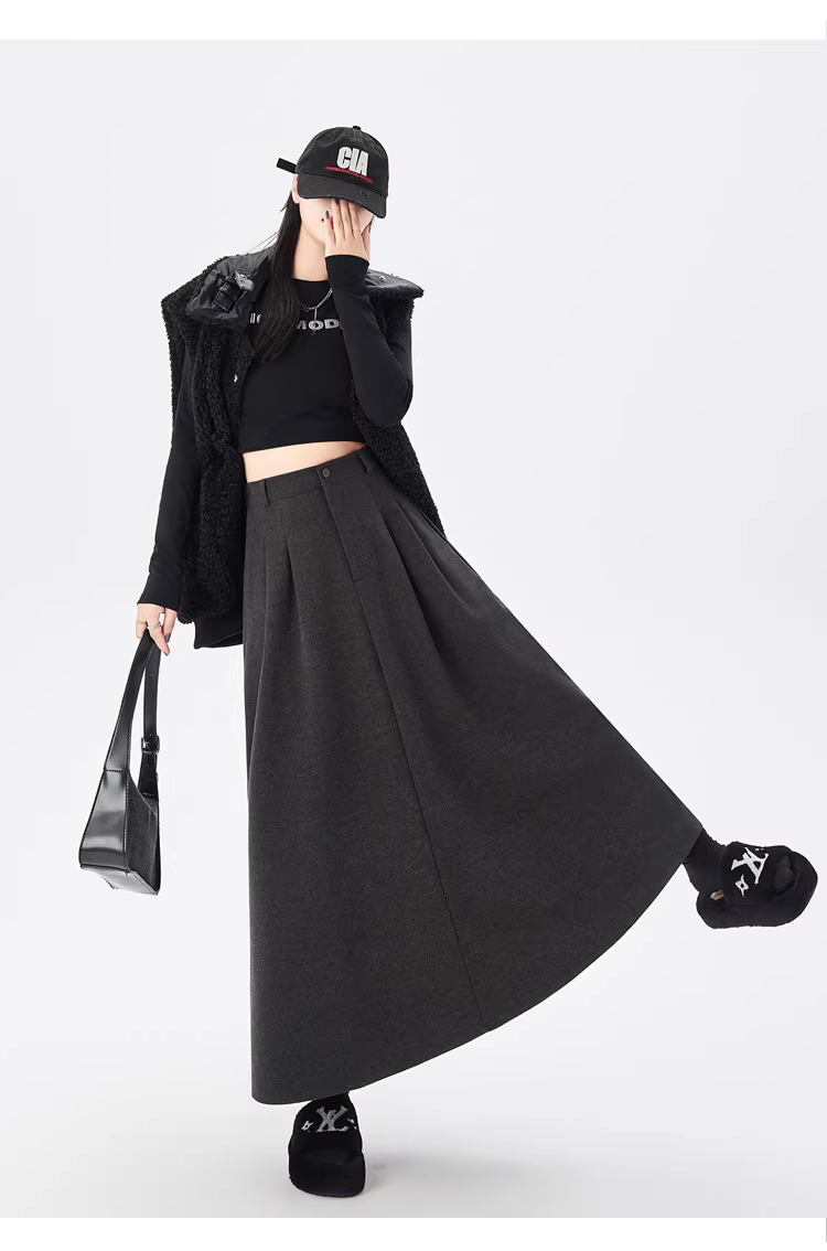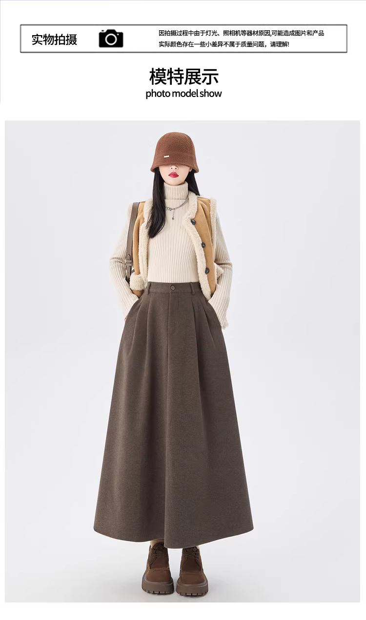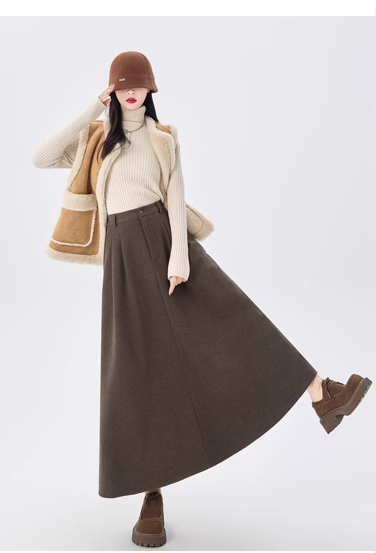 - Váy ôm dáng len nâu La Chapelle dành cho nữ, kiểu dáng mới thu đông 2025, lưng cao, dài qua gối, kiểu dáng vest.