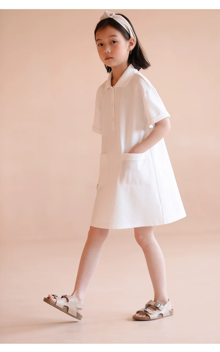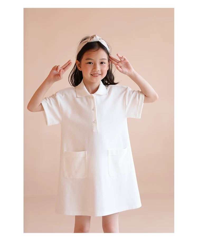 - Váy POLO mùa hè cho bé gái, phong cách preppy, váy mùa hè ngắn tay có cổ, váy thẳng có túi lớn cho trẻ em