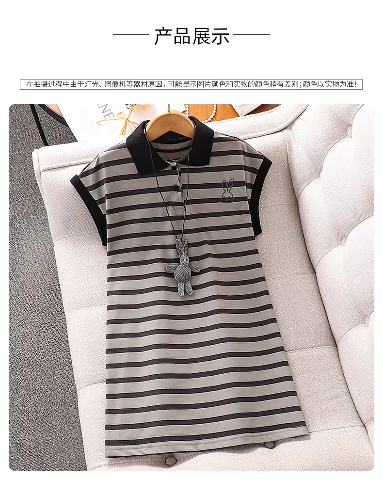- Váy polo sọc cho bé gái trang phục mùa hè Váy ngắn tay thường ngày cho trẻ em Váy ngắn tay cho bé gái lớn mùa hè mỏng Váy phong cách Hàn Quốc