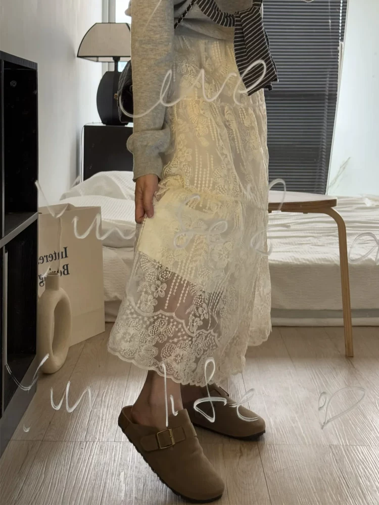- Váy ren nữ, kiểu dáng mới mùa xuân, size lớn, lưng cao, che hông, giảm béo, dáng quả lê, váy chữ A dài vừa phải