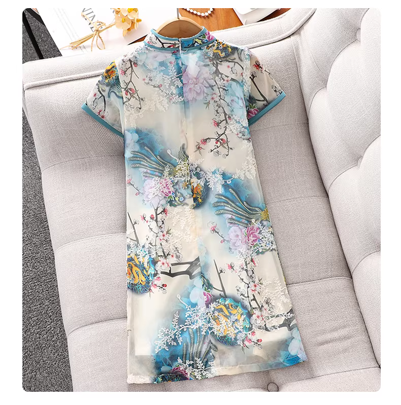 Váy sườn xám cải tiến cho bé gái mặc mùa hè 2025 phong cách mới Váy voan mỏng kiểu Trung Quốc cho bé gái Váy voan trẻ em