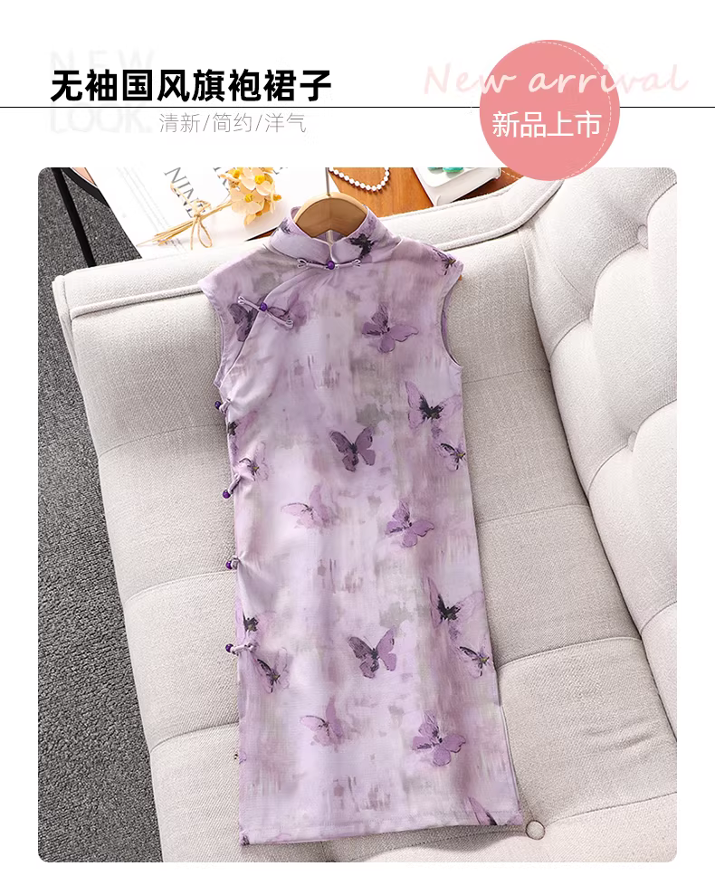- Váy sườn xám kiểu Trung Quốc mới dành cho bé gái lớn hơn, váy mùa hè không tay kiểu Hanfu, váy trẻ em mùa hè mới 2025.