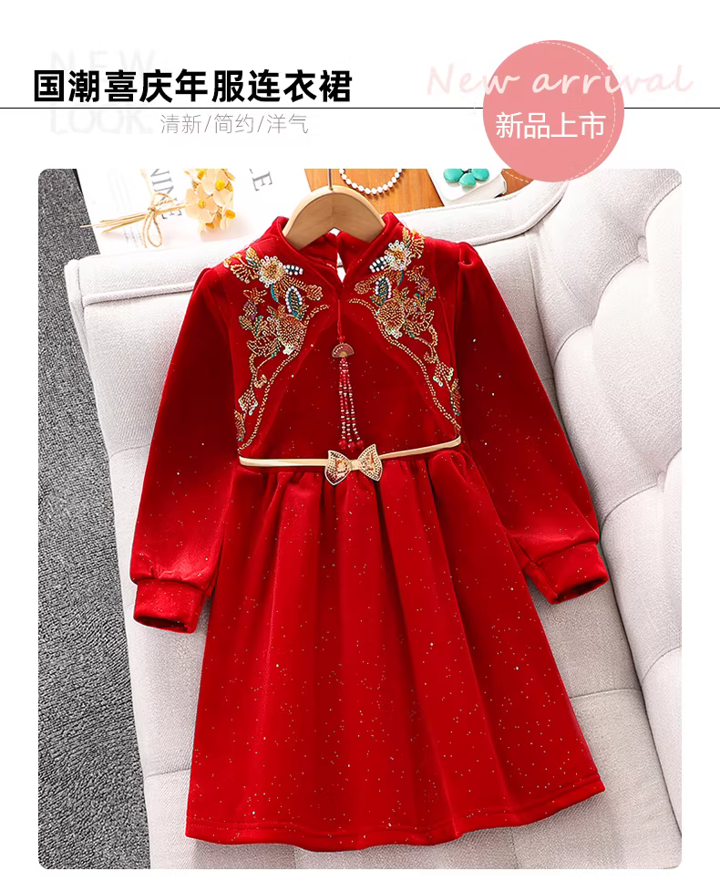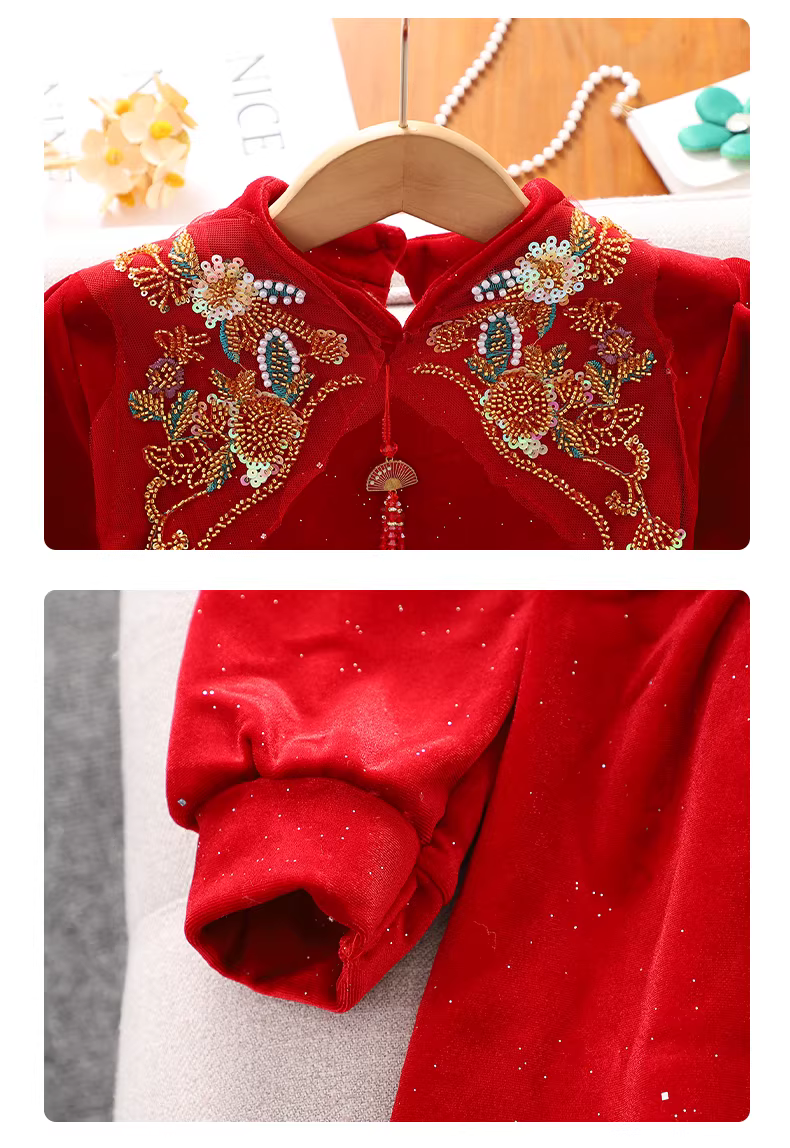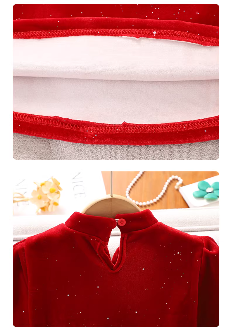 - Váy Tết đỏ bé gái mùa đông 2025, bộ đồ lông cừu Tết trẻ em, váy dự tiệc mùa thu đông cho bé gái.