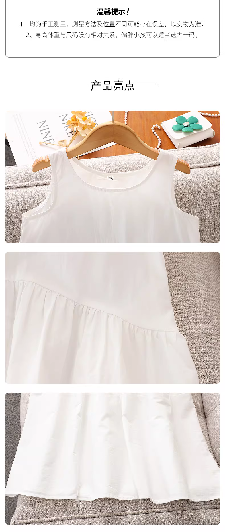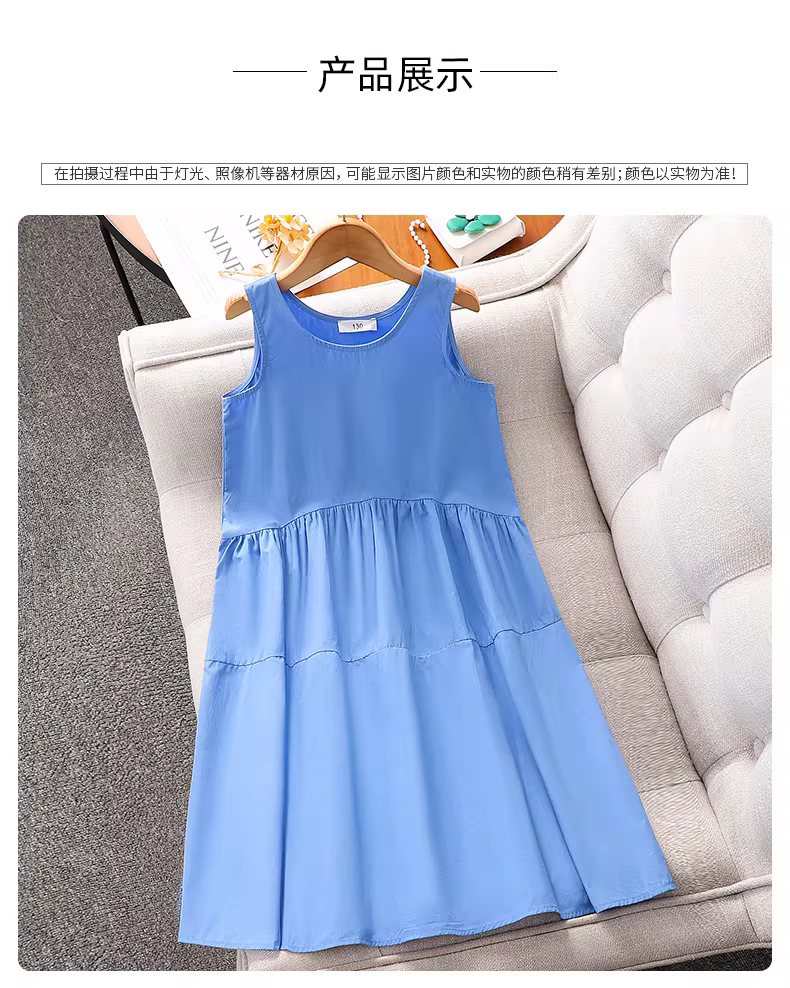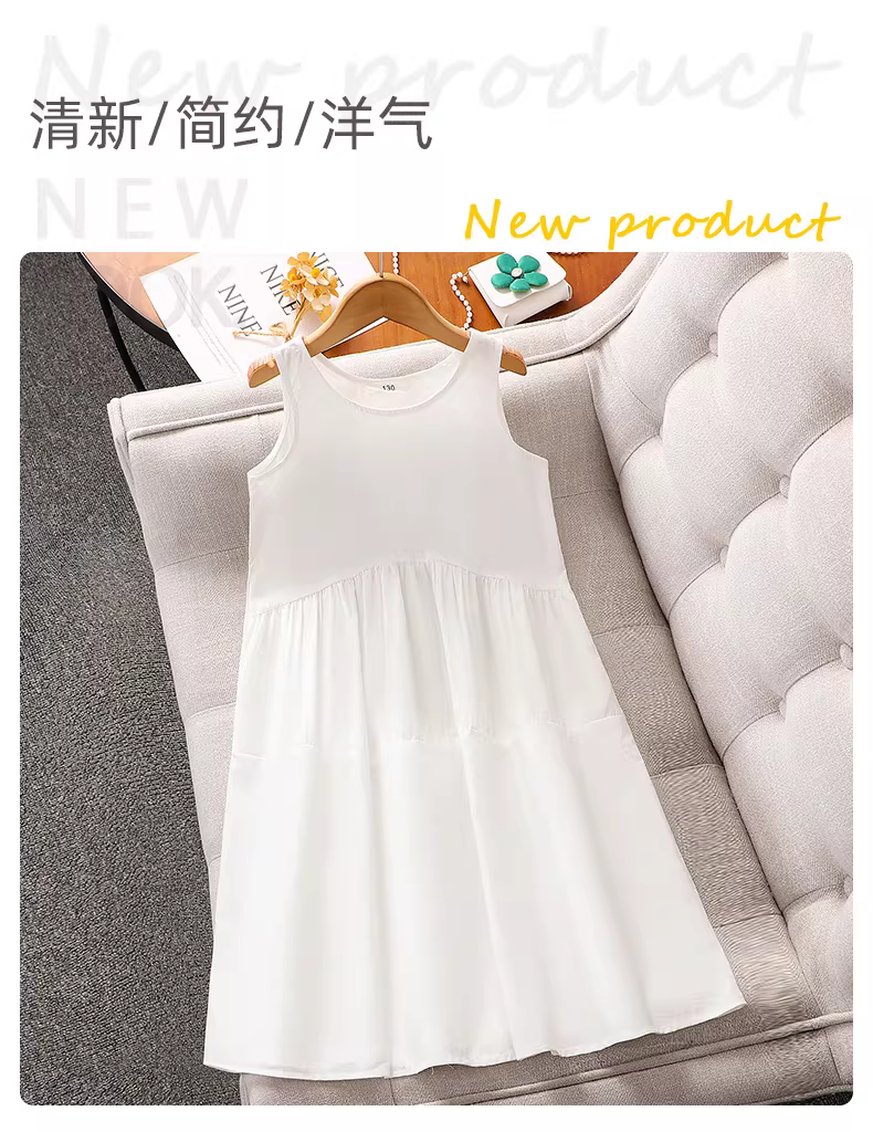 - Váy trắng bé gái kiểu hè mới 2025, kiểu dáng vest không tay, chất liệu mỏng, váy trẻ em thường ngày