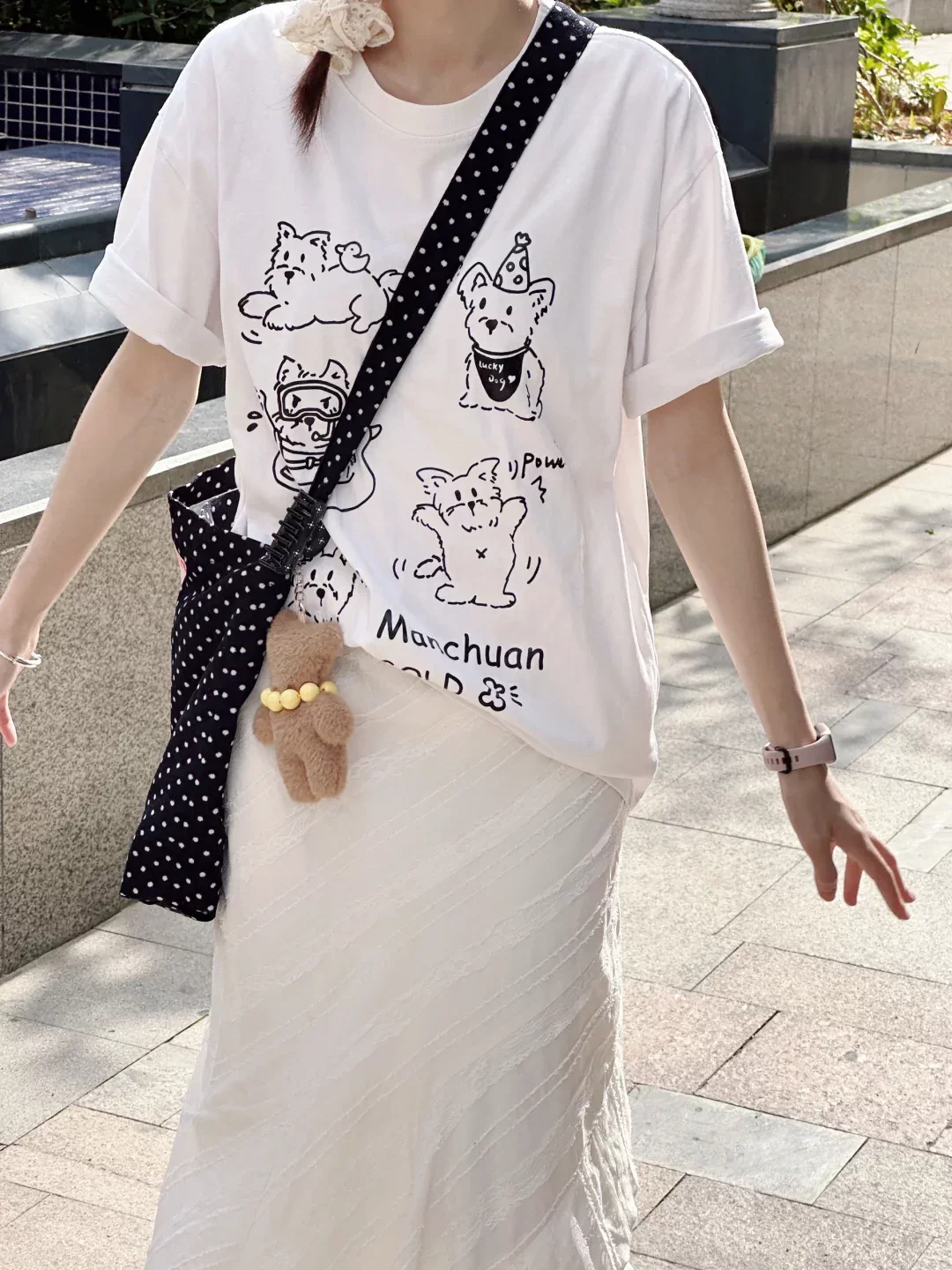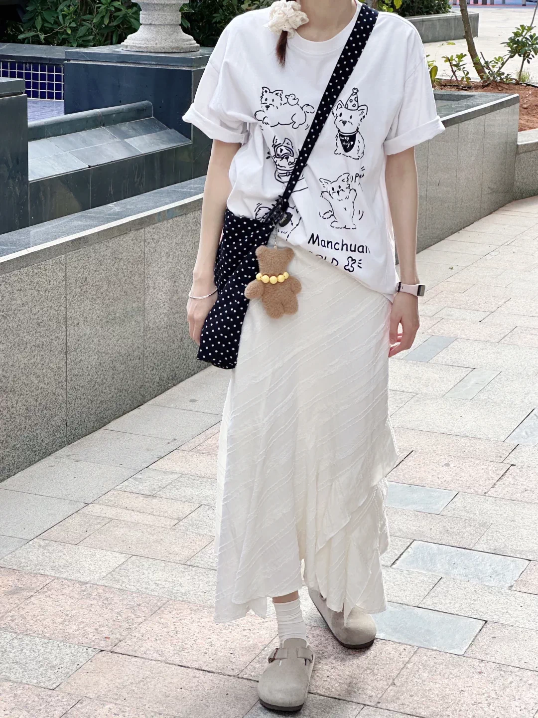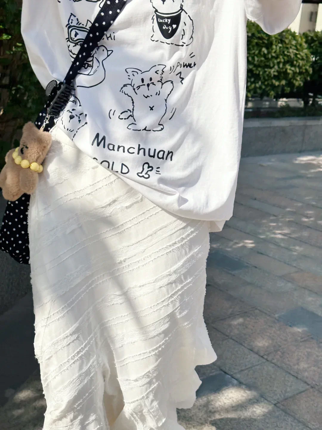 Váy trắng không đều kiểu dáng dành cho nữ, mùa xuân hè, cỡ lớn, lưng cao, che hông, thon gọn, váy đuôi cá chữ A dài vừa phải
