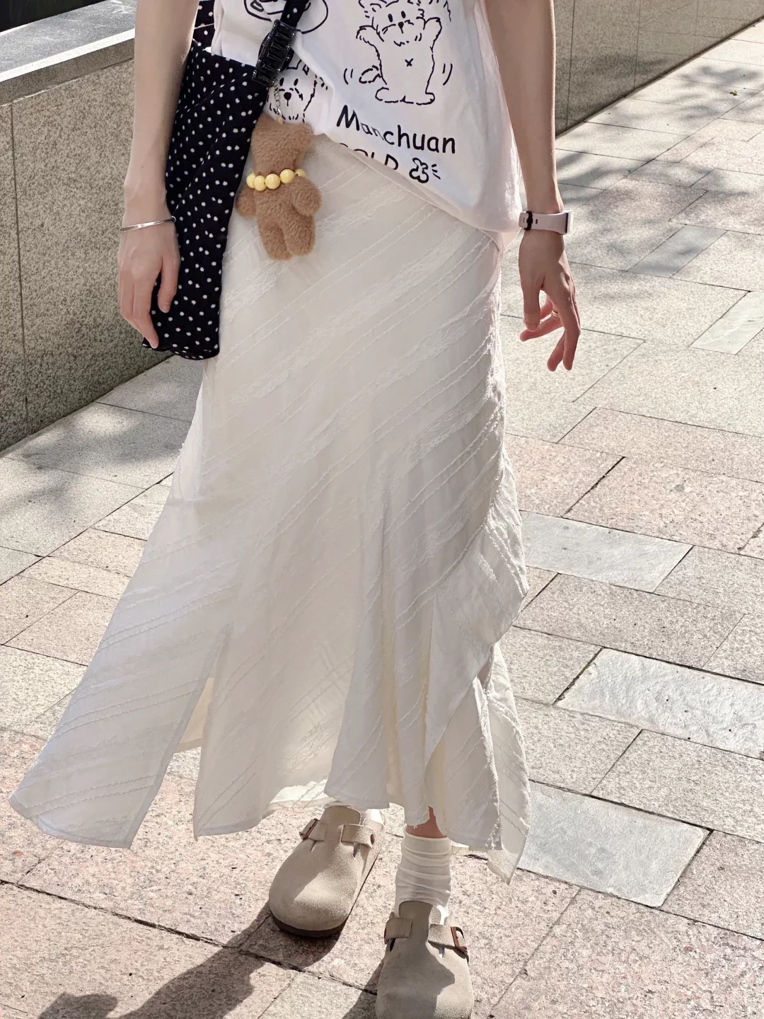 - Váy trắng không đều kiểu dáng dành cho nữ, mùa xuân hè, cỡ lớn, lưng cao, che hông, thon gọn, váy đuôi cá chữ A dài vừa phải