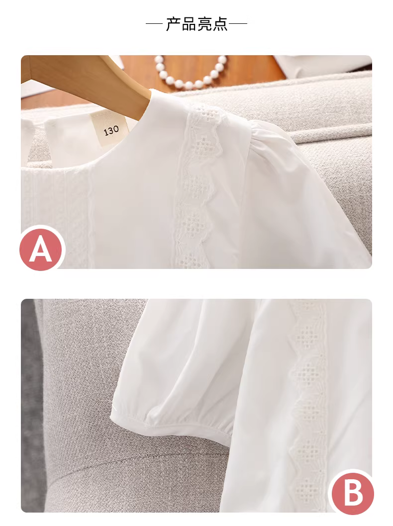 - Váy trắng kiểu Pháp cho bé gái, váy mùa hè, váy công chúa tay phồng cho trẻ em, phong cách mùa hè, váy ren thon gọn cho bé gái lớn