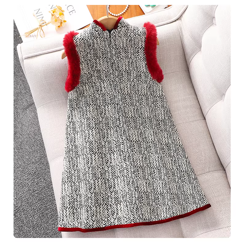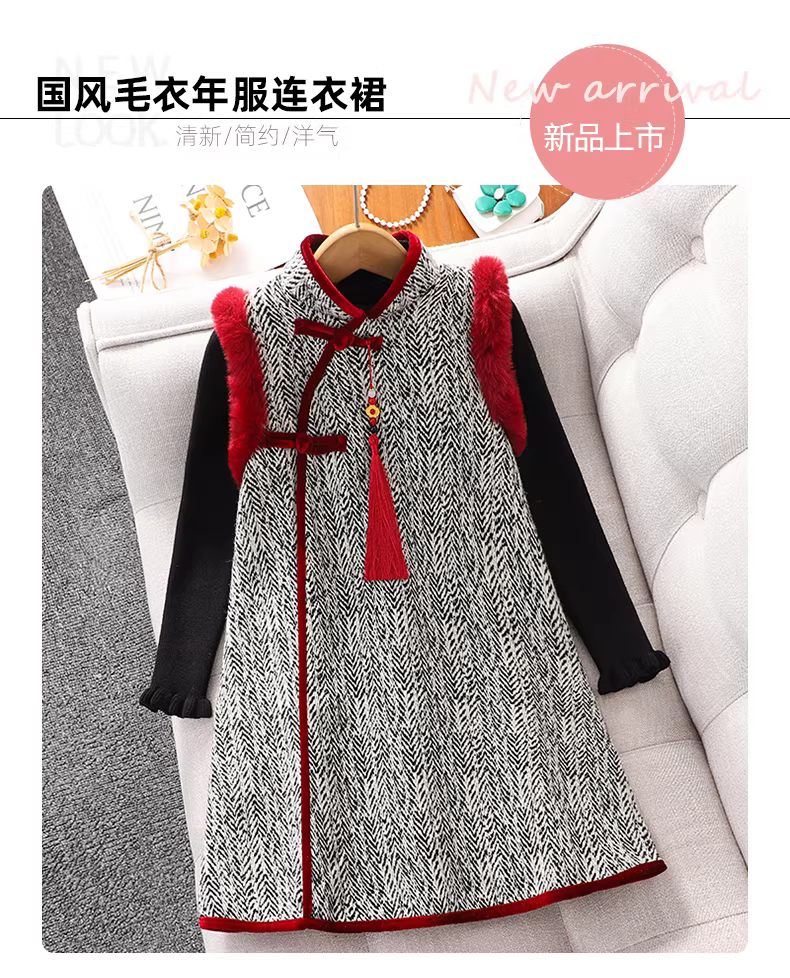 Váy trang phục Tết mùa đông cho bé gái 2025, bộ đồ Tết trẻ em, váy mùa thu đông, áo dài Tết cho bé gái