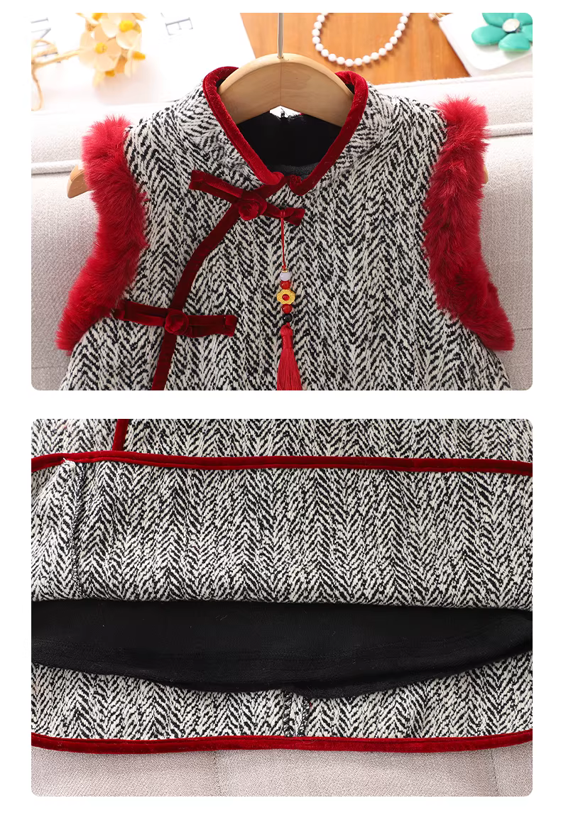 - Váy trang phục Tết mùa đông cho bé gái 2025, bộ đồ Tết trẻ em, váy mùa thu đông, áo dài Tết cho bé gái