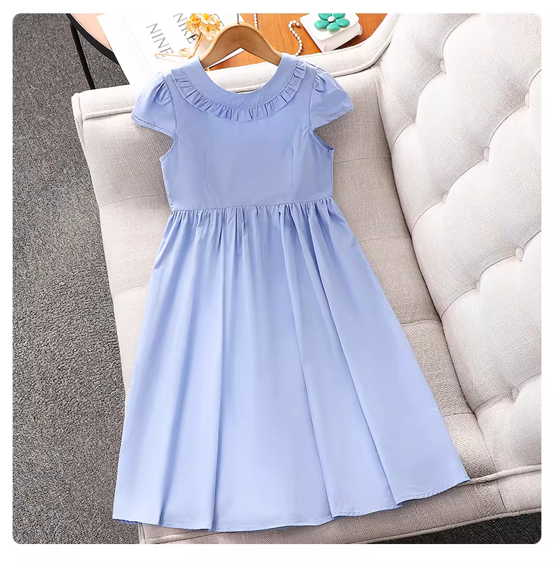 - Váy tươi mát kiểu Pháp dành cho bé gái, váy mùa hè, váy dài dáng rộng giảm béo cho trẻ em, váy công chúa ngắn tay mỏng cho bé gái