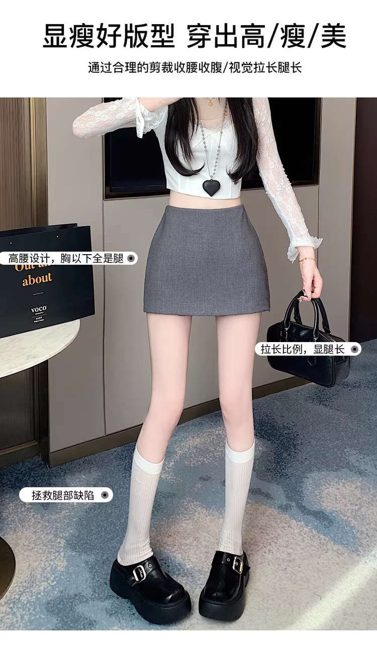 Váy vest màu xám, quần váy xẻ tà xuân thu hè dành cho nữ, quần culottes giả hai mảnh, váy cạp cao, váy mini che hông