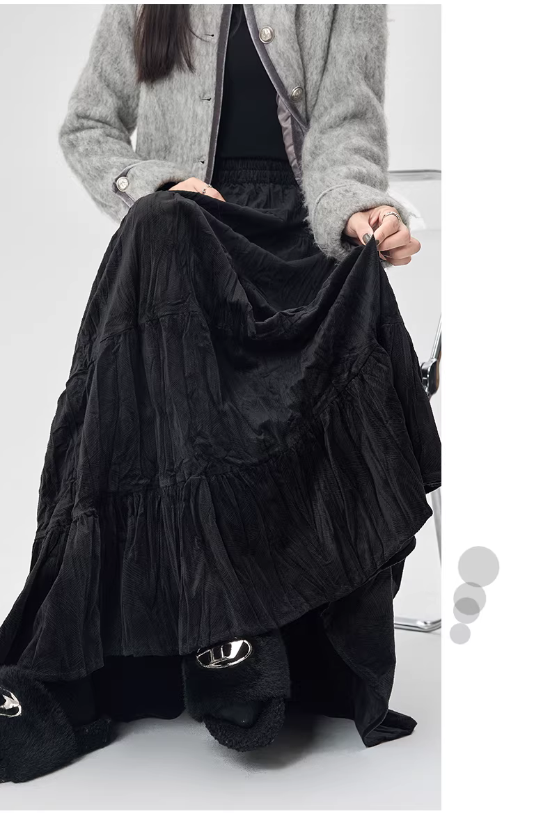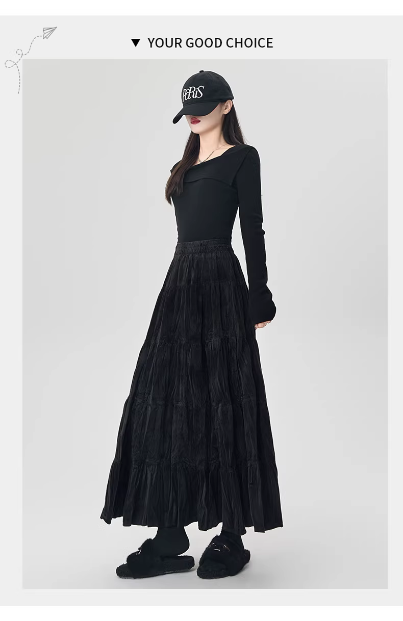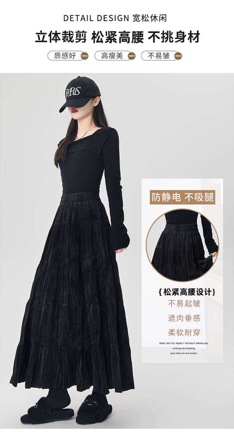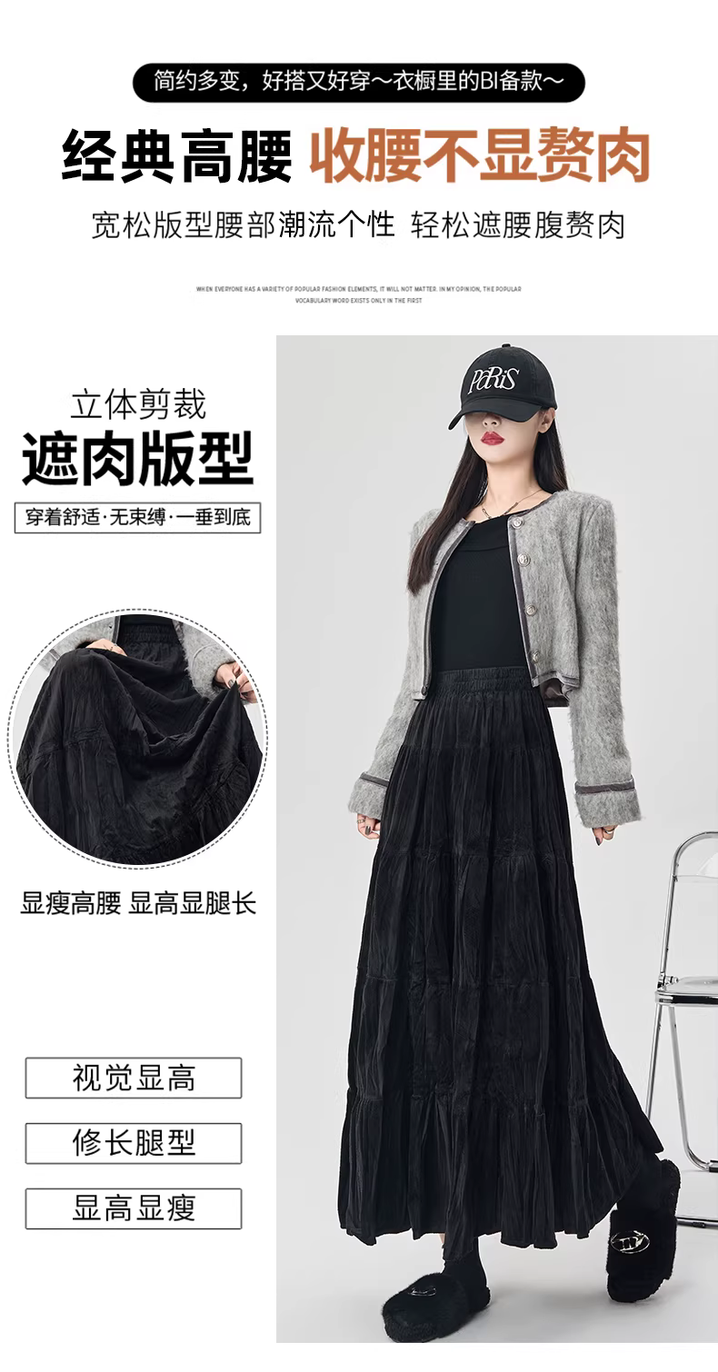 - Váy xếp ly đen La Chapelle dành cho nữ, mẫu mới thu đông 2025, cạp cao, dáng chữ A, dài ngang đùi