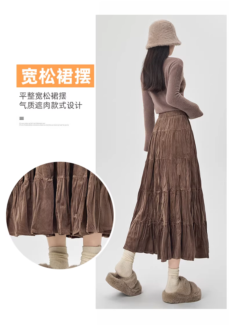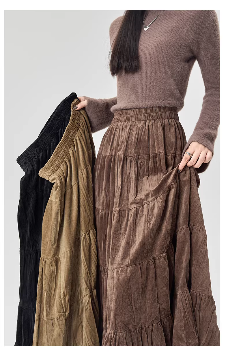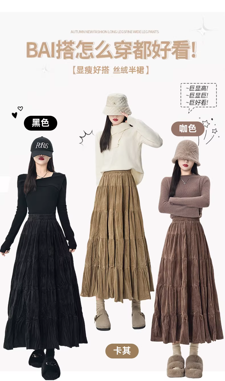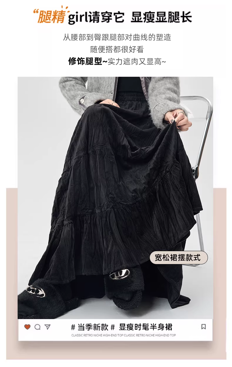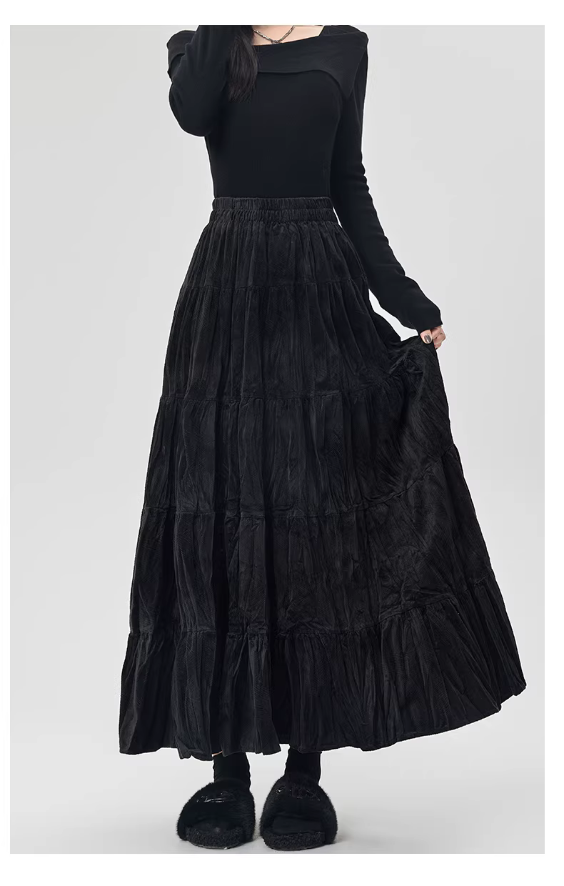 - Váy xếp ly đen La Chapelle dành cho nữ, mẫu mới thu đông 2025, cạp cao, dáng chữ A, dài ngang đùi