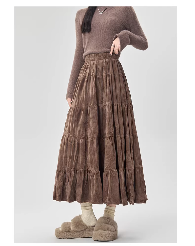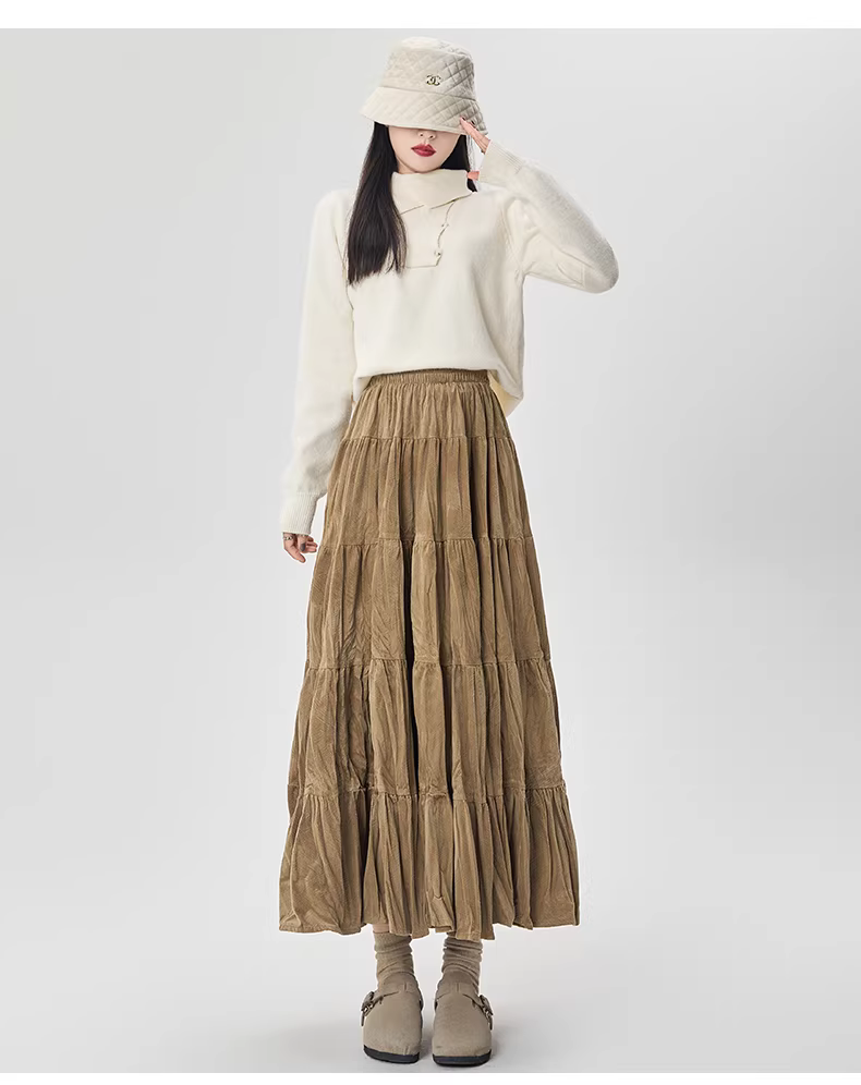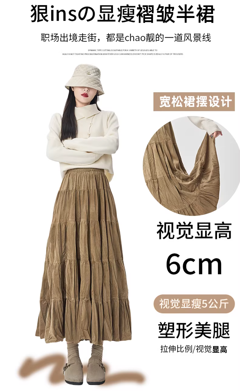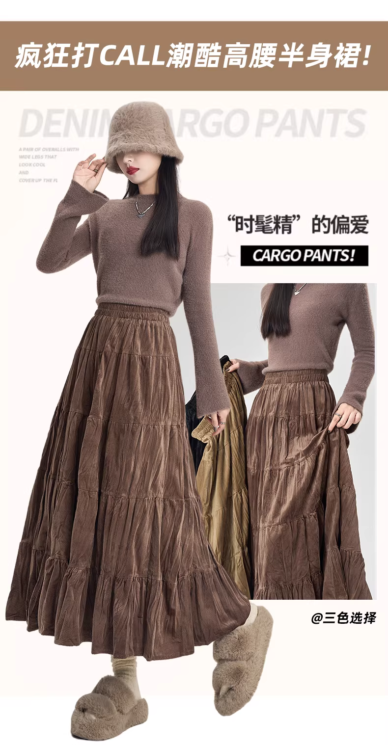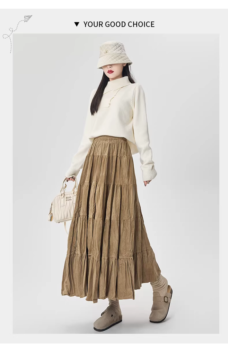 - Váy xếp ly đen La Chapelle dành cho nữ, mẫu mới thu đông 2025, cạp cao, dáng chữ A, dài ngang đùi