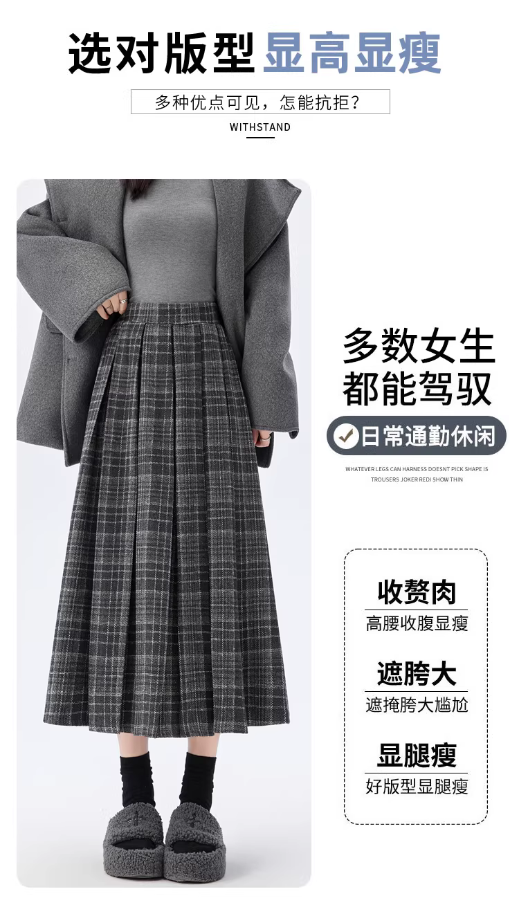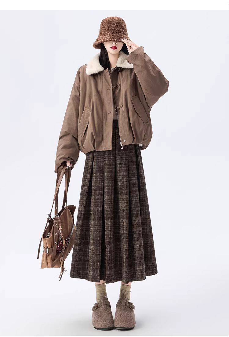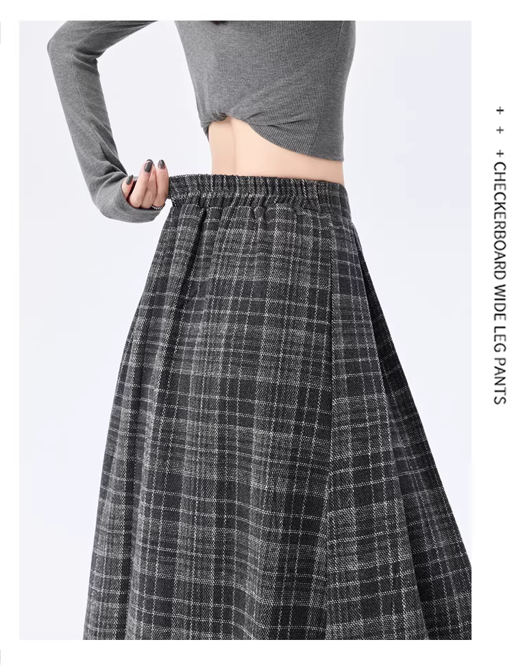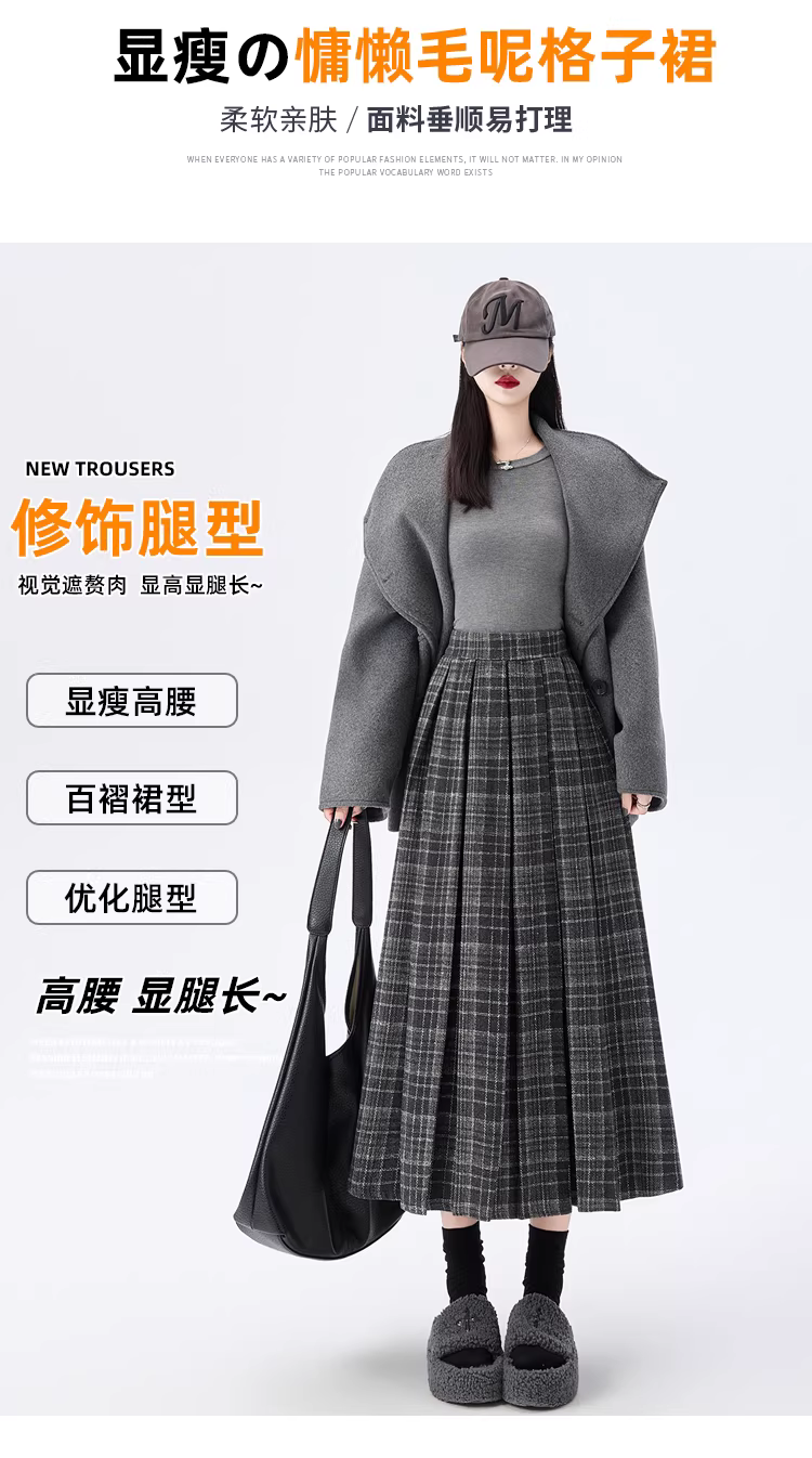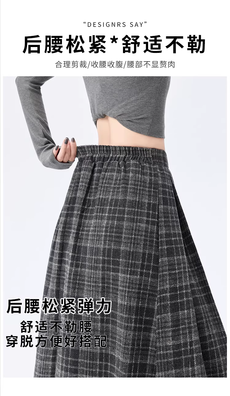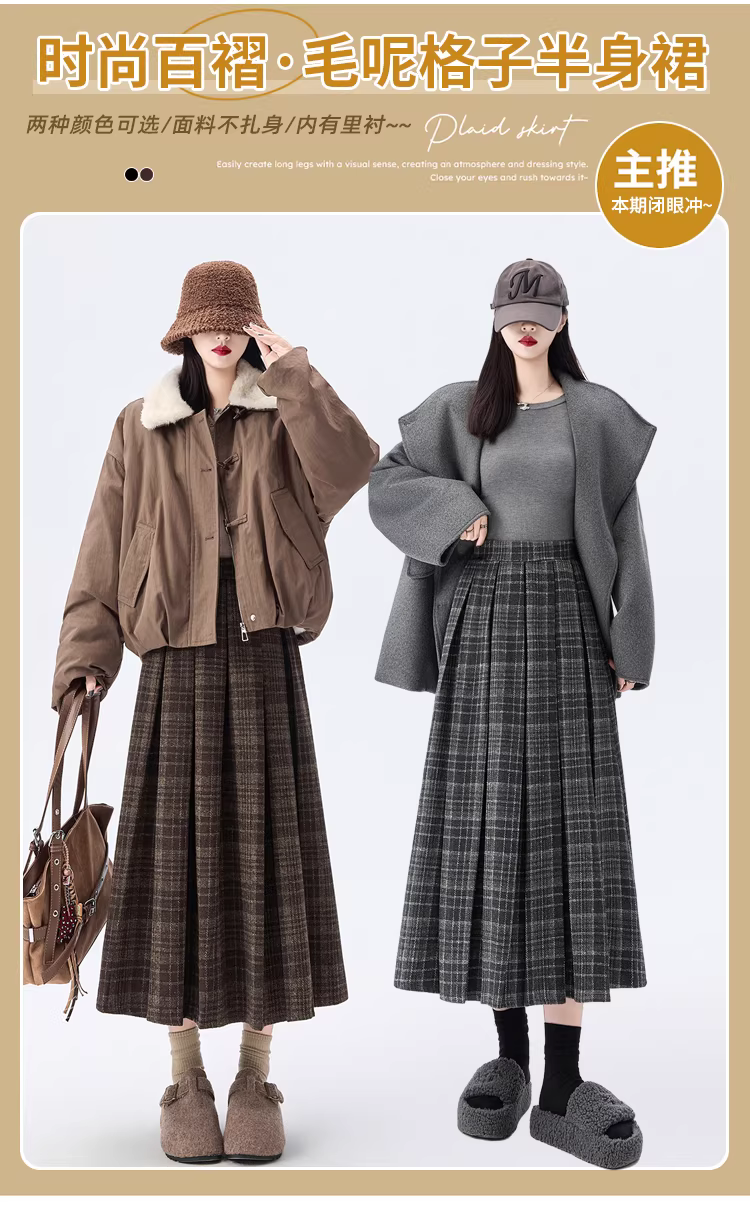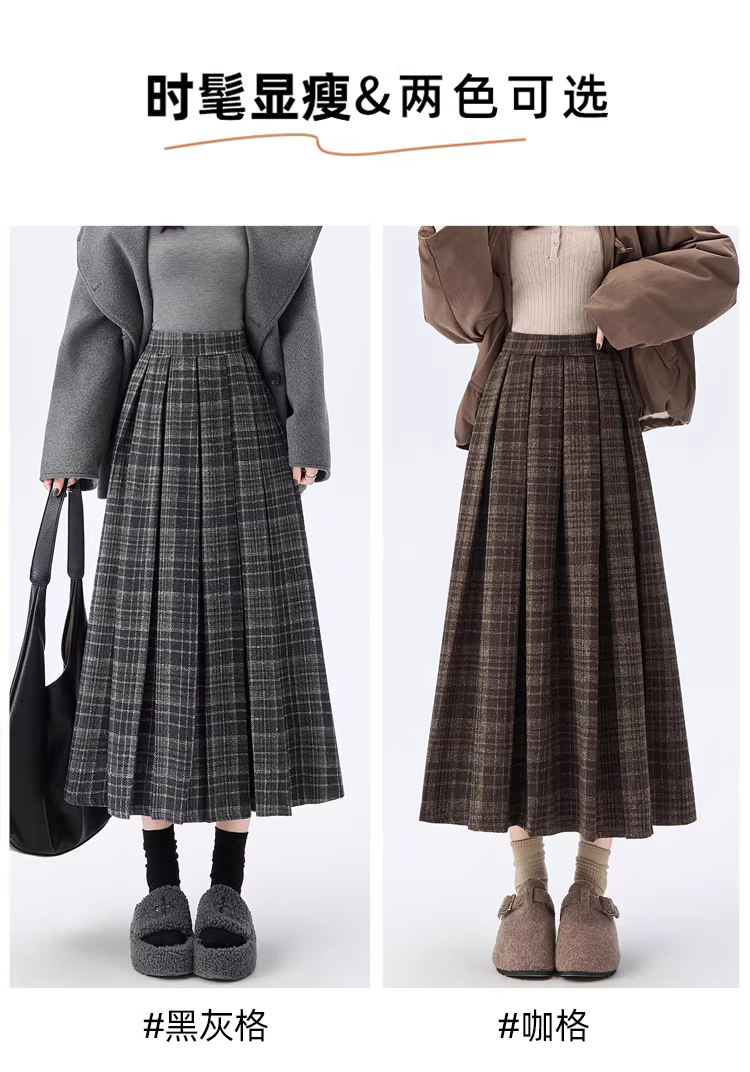 - Váy xếp ly kẻ caro màu cà phê La Chapelle dành cho nữ, mẫu mới thu đông 2025, lưng cao, dài ngang đùi, dáng xòe