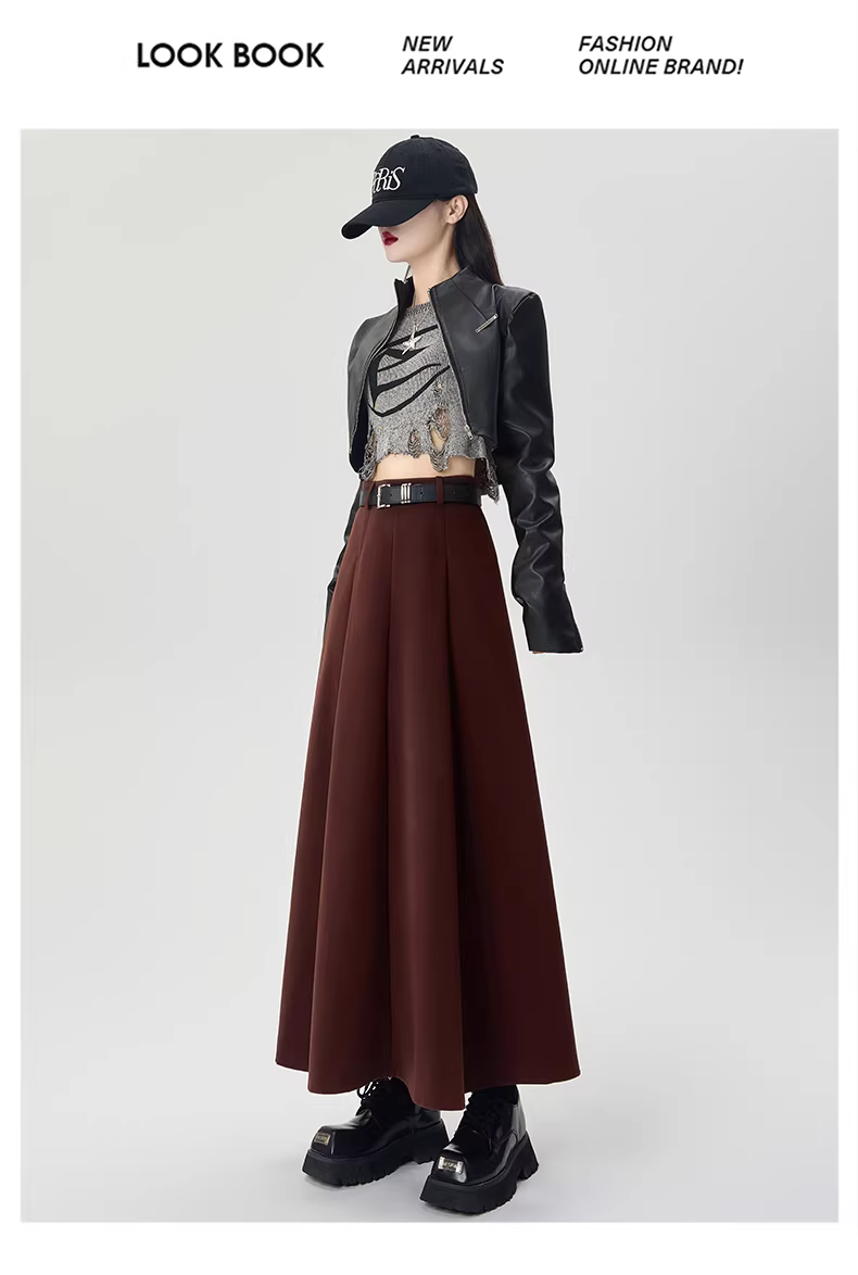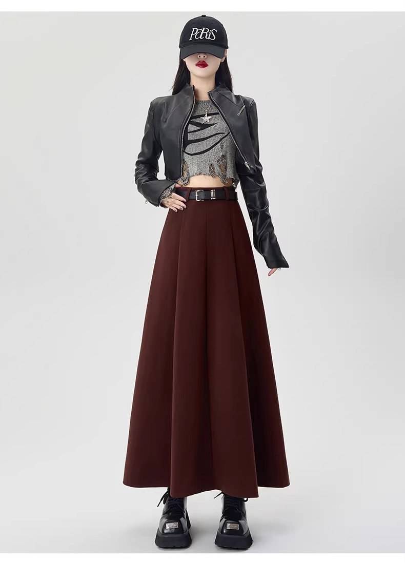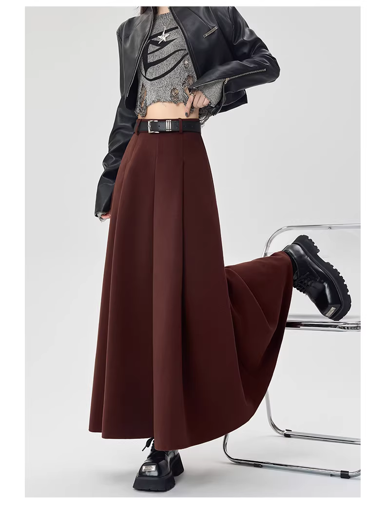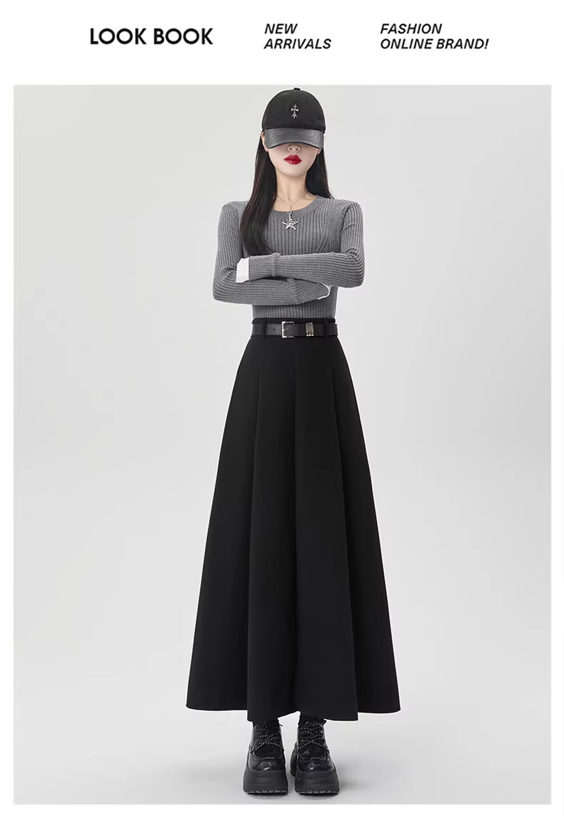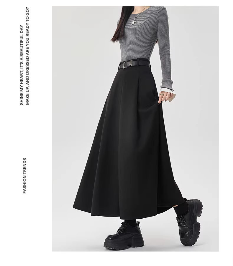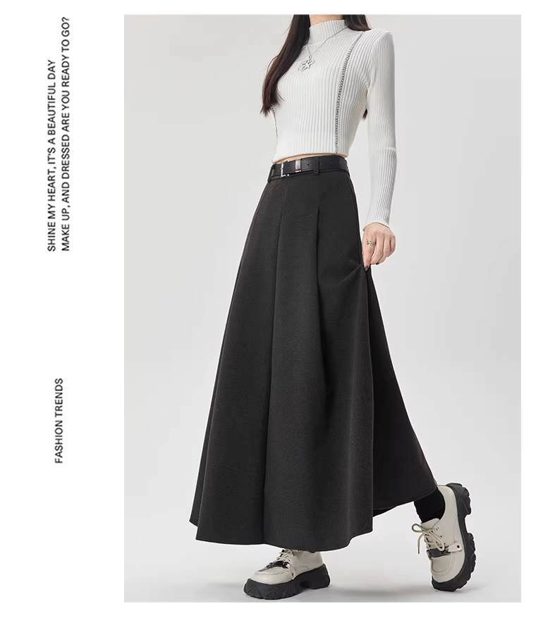 - Váy xếp ly len đen La Chapelle dành cho nữ, mùa thu đông 2025, kiểu dáng mới, lưng cao, dáng chữ A, dài ngang đùi.