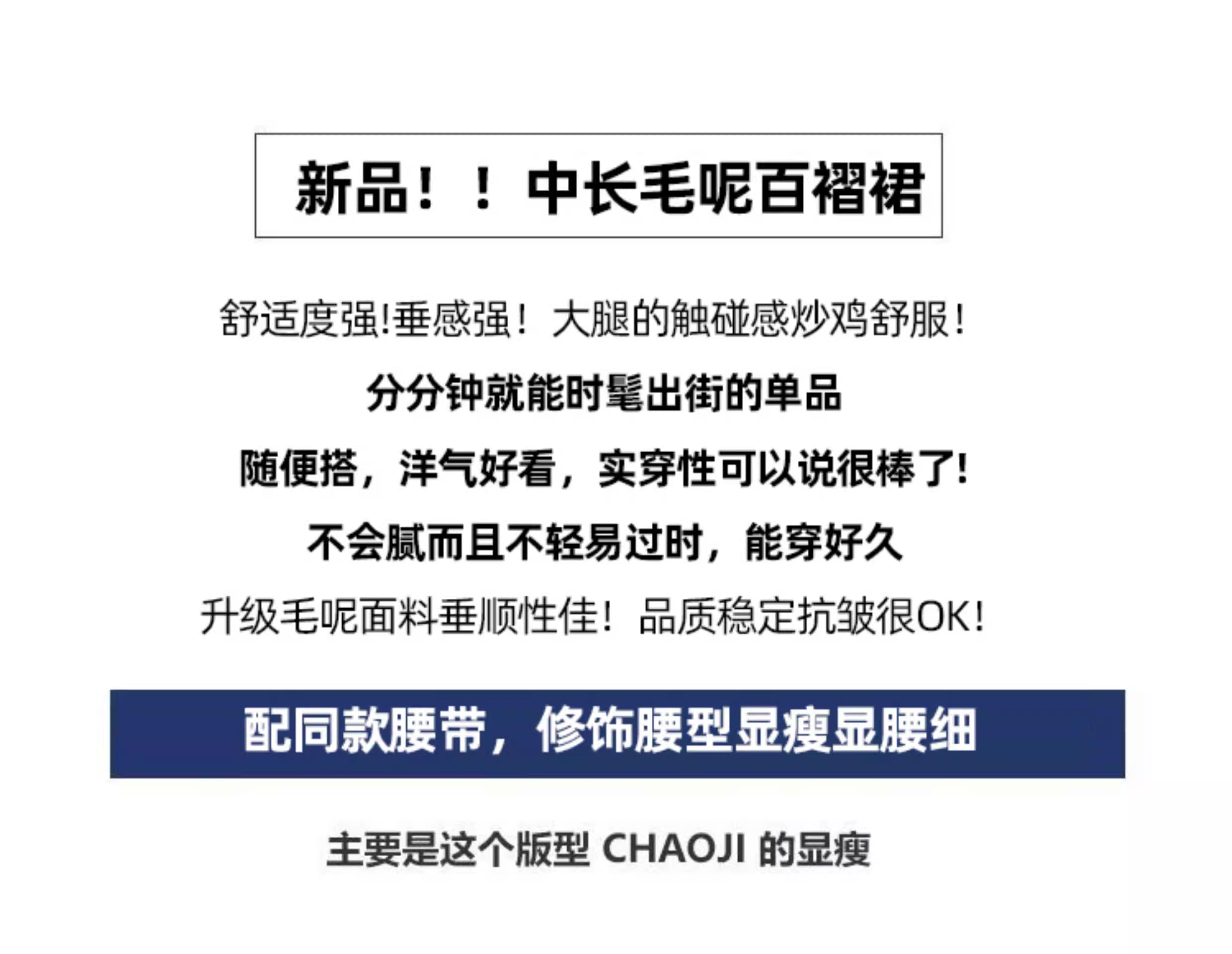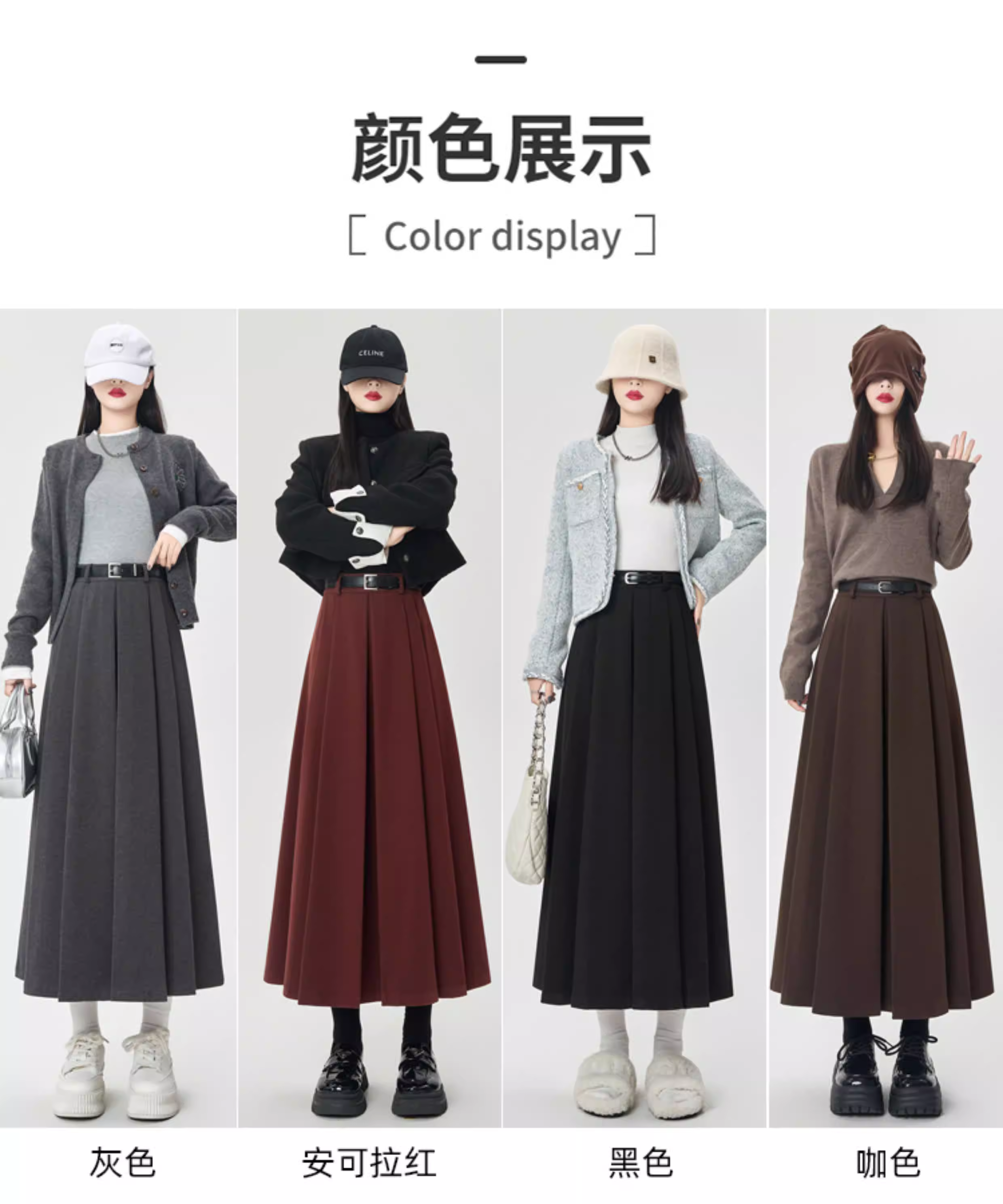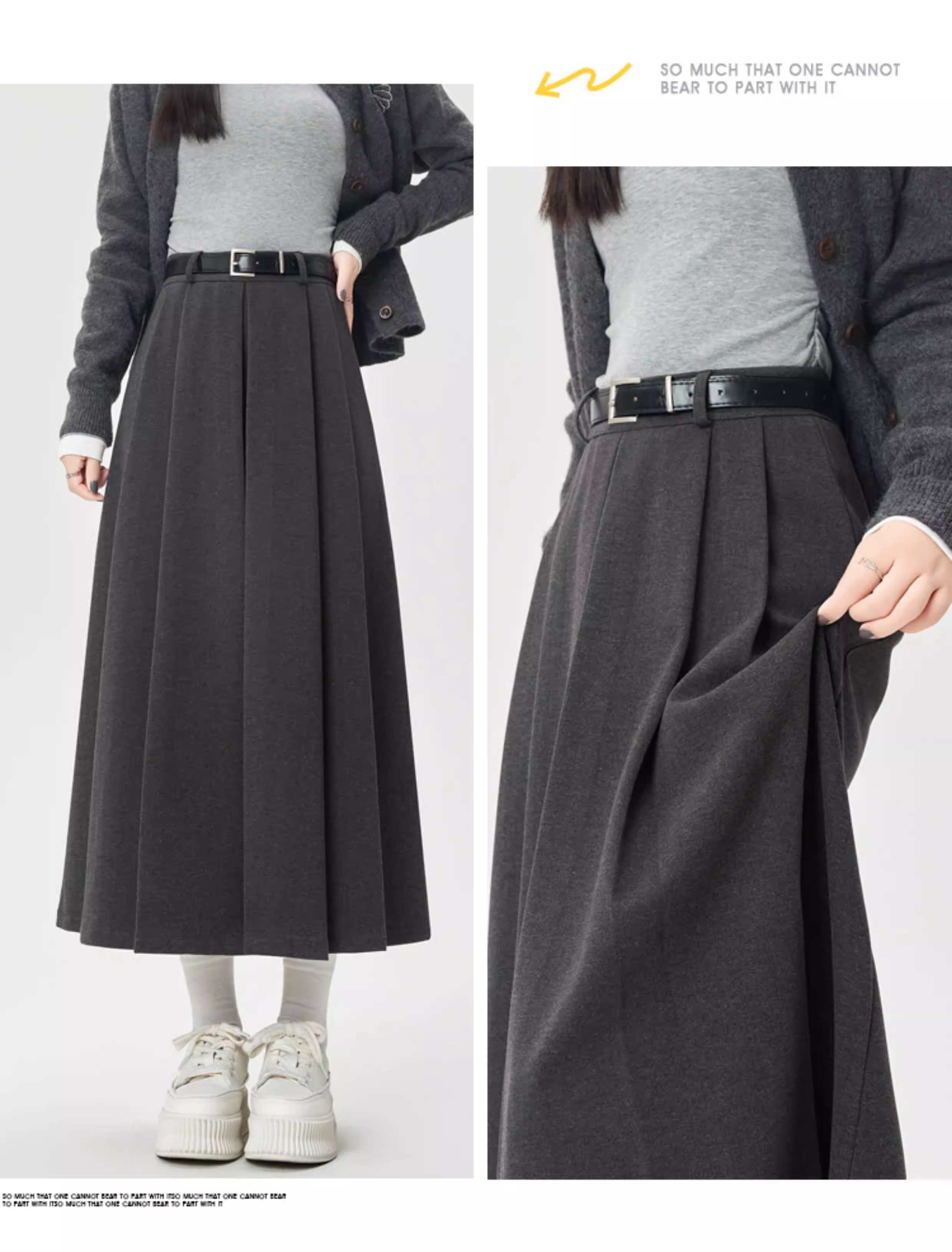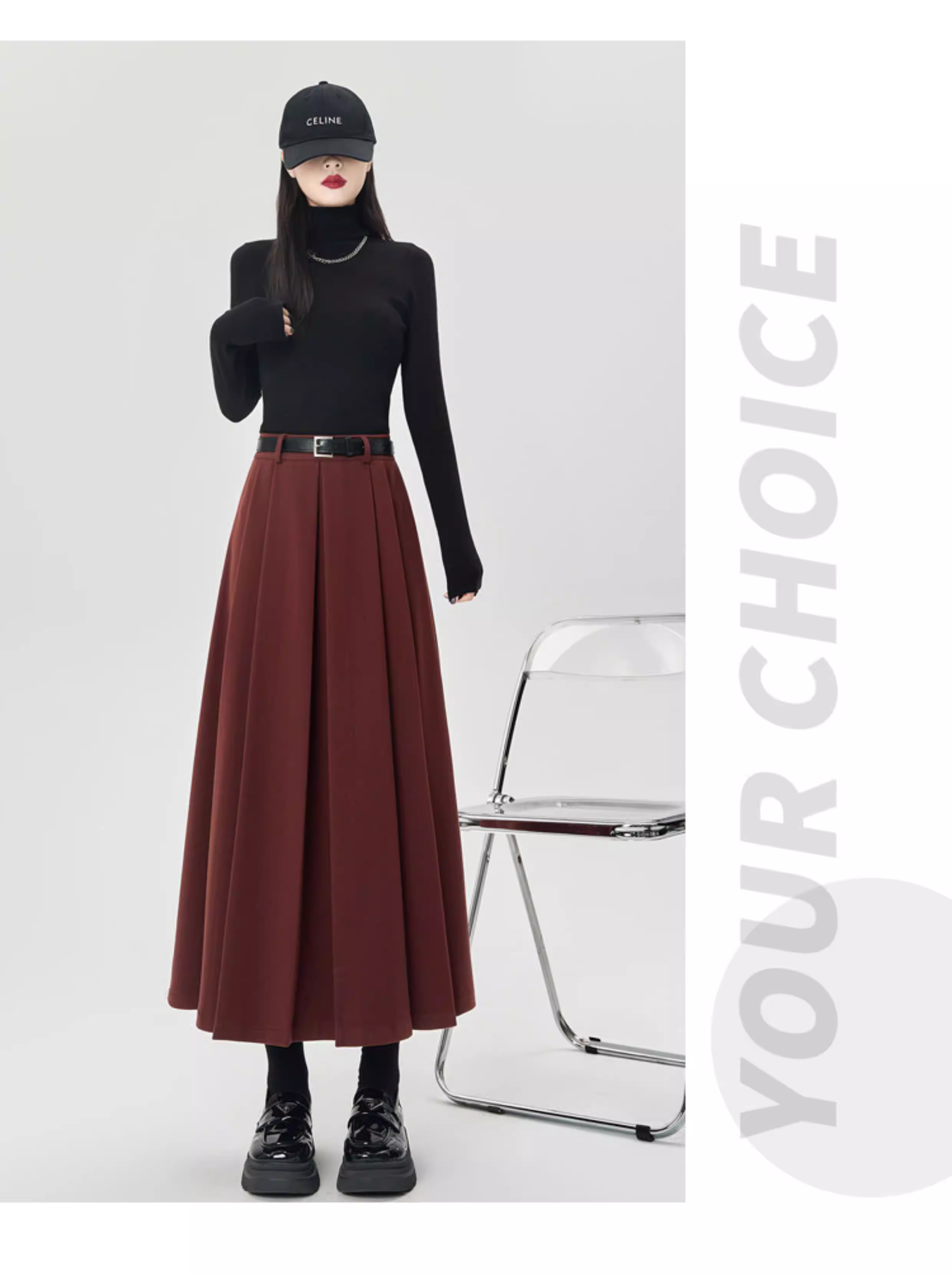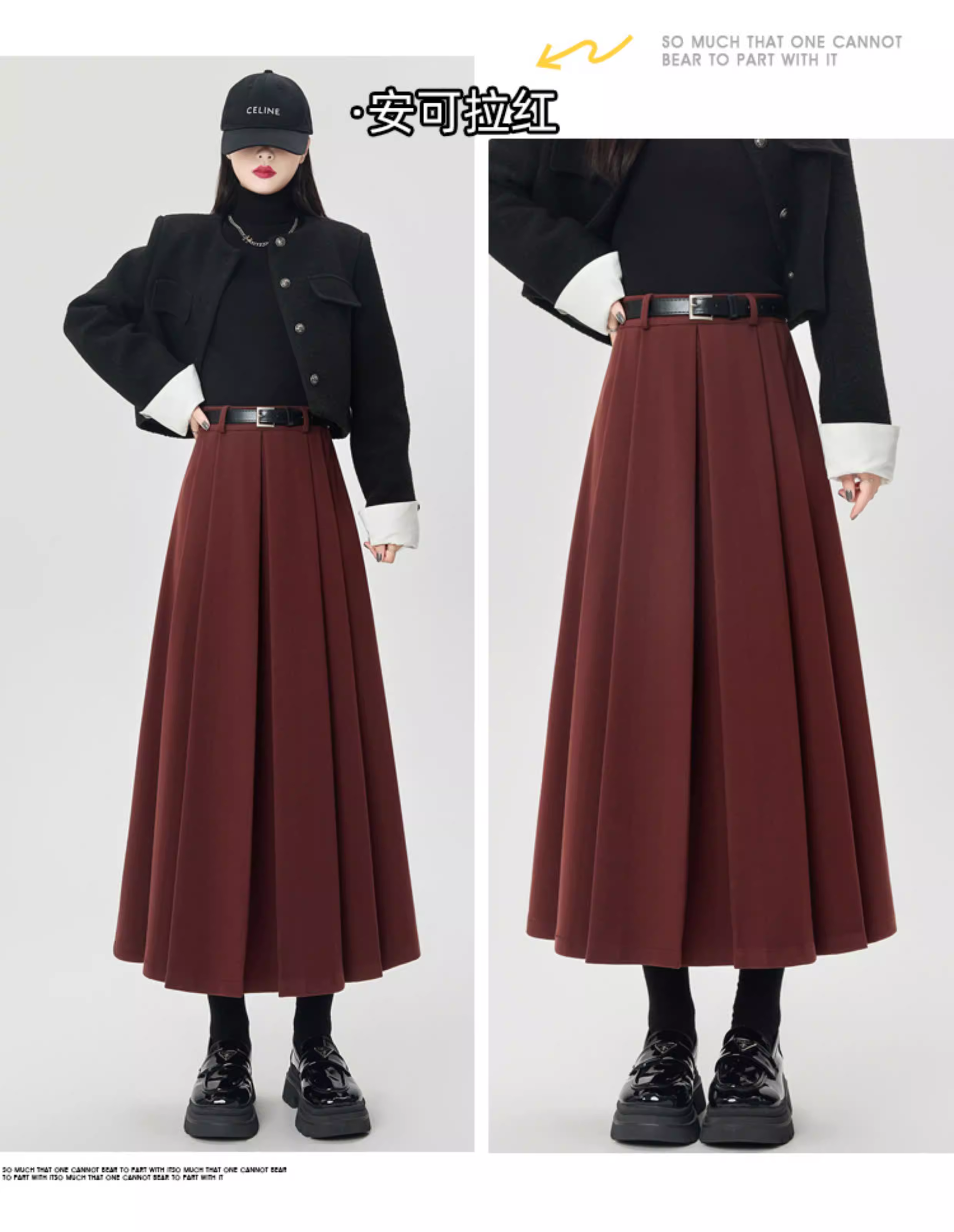 - Váy xếp ly len La Chapelle dành cho nữ, kiểu mới thu đông 2025, dáng chữ A cao eo, dài qua gối, kiểu dáng ôm dáng.