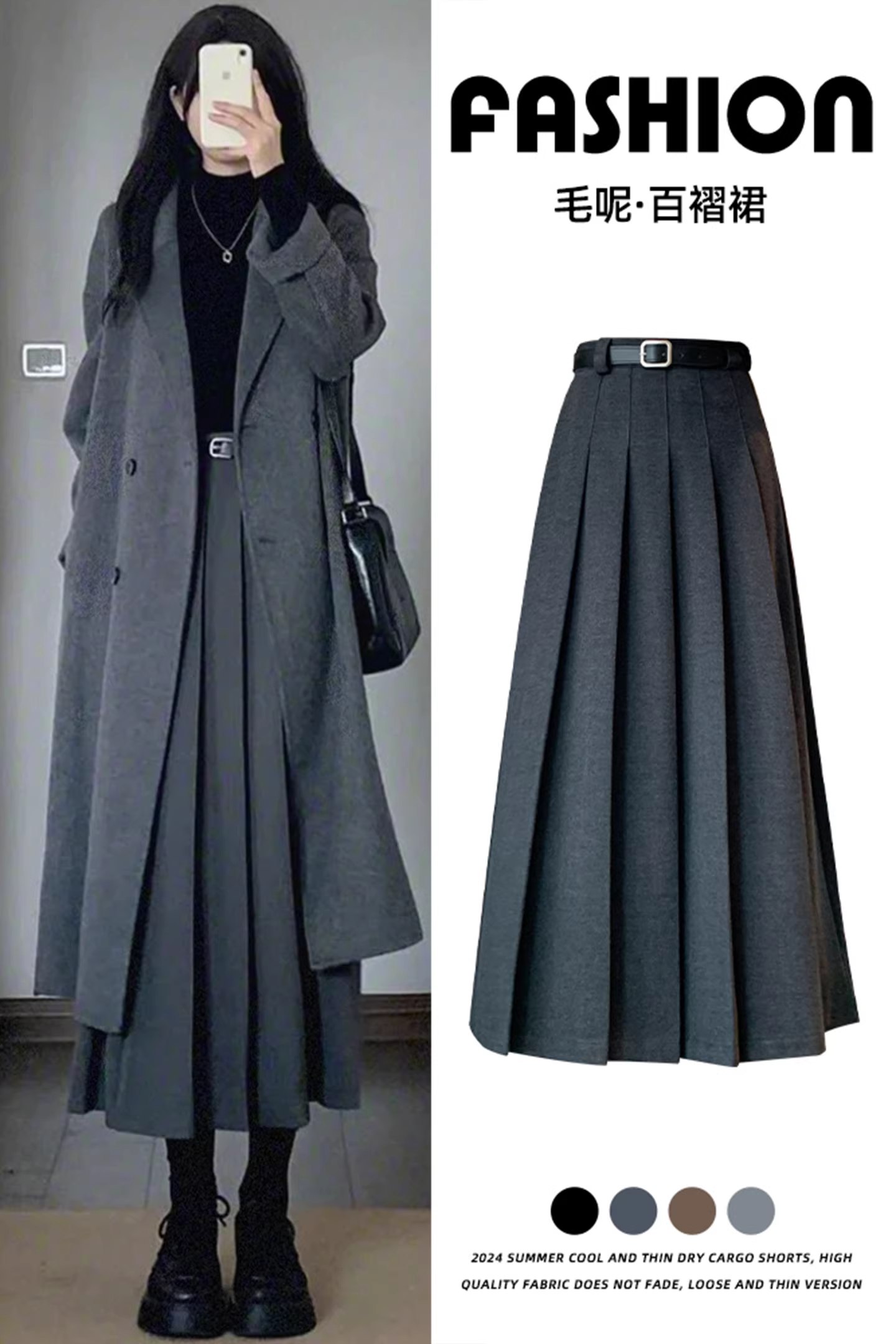 - Váy xếp ly len màu xám La Chapelle dành cho nữ, mẫu mới thu đông 2025, cạp cao, dáng chữ A, dài ngang đùi