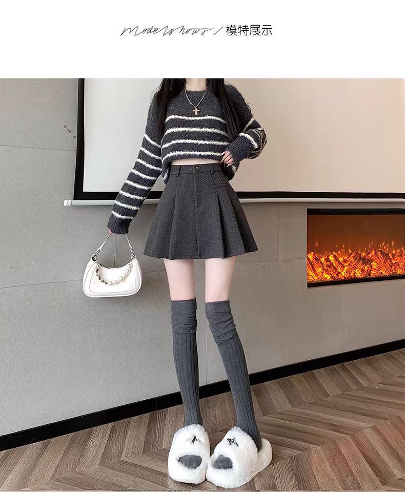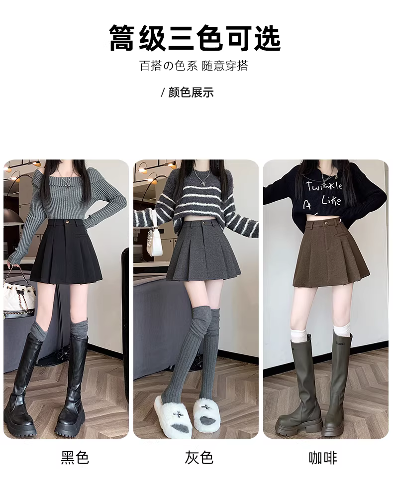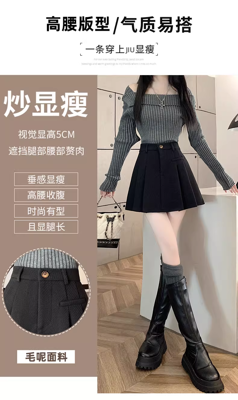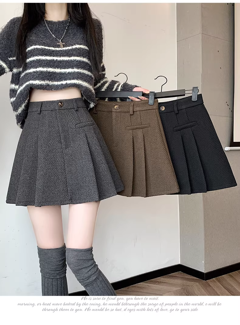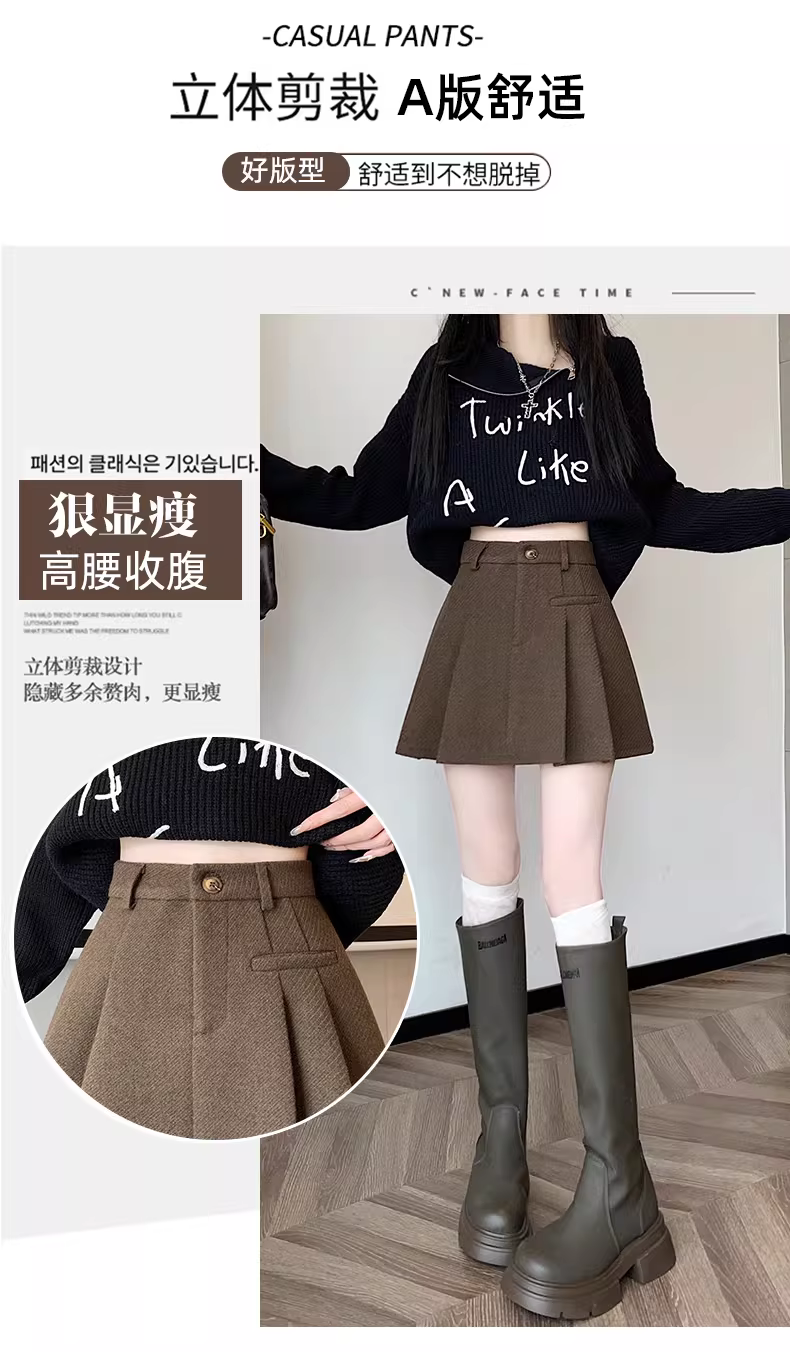 - Váy xếp ly màu nâu La Chapelle dành cho nữ, mẫu mới thu đông 2025, cạp cao, dáng ôm, kiểu chữ A, ngắn