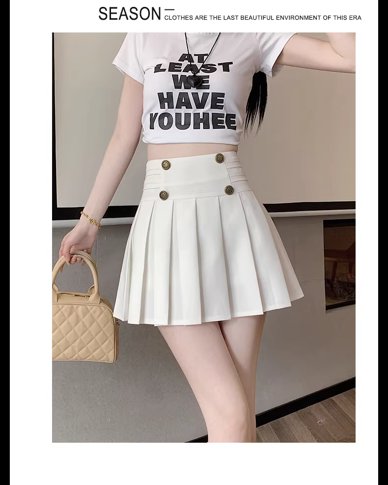 Váy xếp ly màu trắng dành cho nữ, mùa xuân hè, phổ biến trong năm nay, váy nửa thân, váy vest, váy chữ A, váy ngắn.