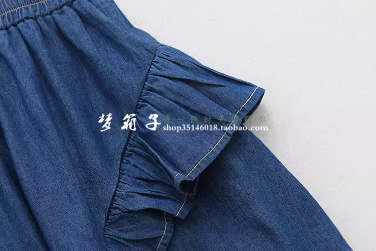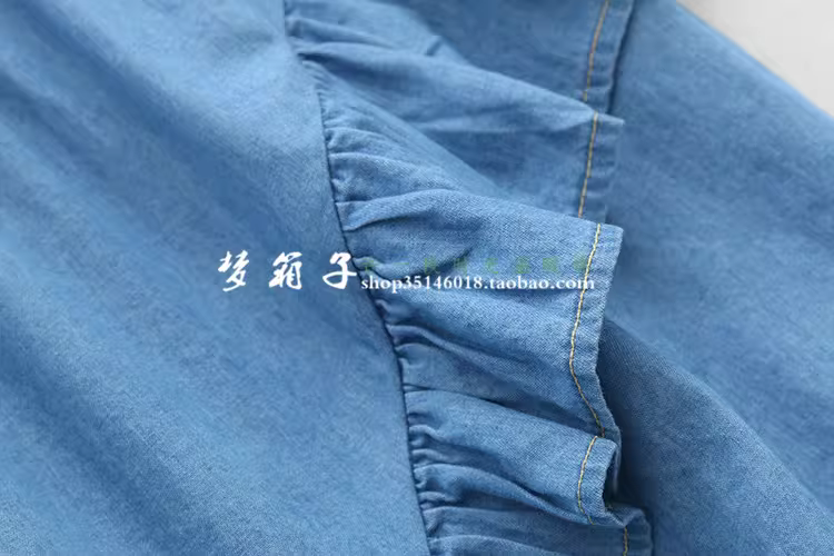 棉质牛仔面料,甜美荷叶边拼接