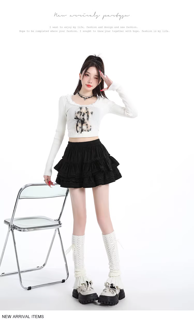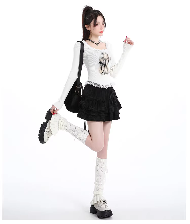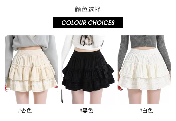 - Váy xếp tầng ren trắng La Chapelle dành cho nữ, mẫu mới thu đông 2025, cạp cao, che hông, dáng chữ A, ngắn