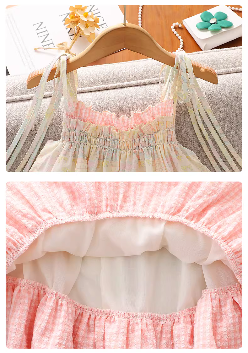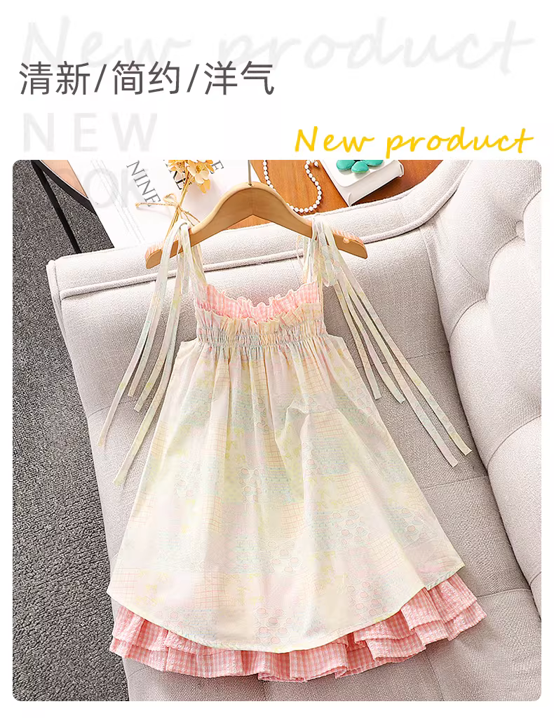Váy yếm dopamine cho bé gái, kiểu dáng mới hè 2025, dáng rộng, tôn dáng, phong cách preppy cho bé gái.