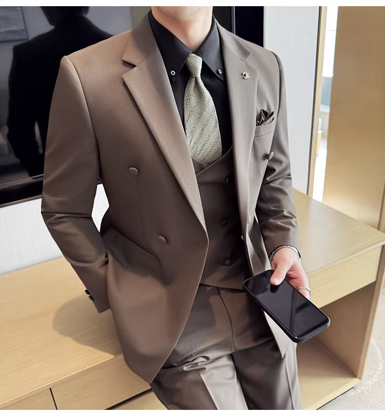 Vest nam cao cấp hai hàng khuy, trang phục công sở lịch lãm, kiểu dáng ôm body, vest cưới phong cách Anh cho chú rể