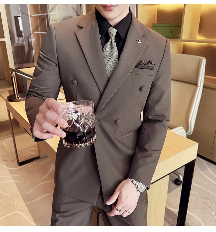 - Vest nam cao cấp hai hàng khuy, trang phục công sở lịch lãm, kiểu dáng ôm body, vest cưới phong cách Anh cho chú rể