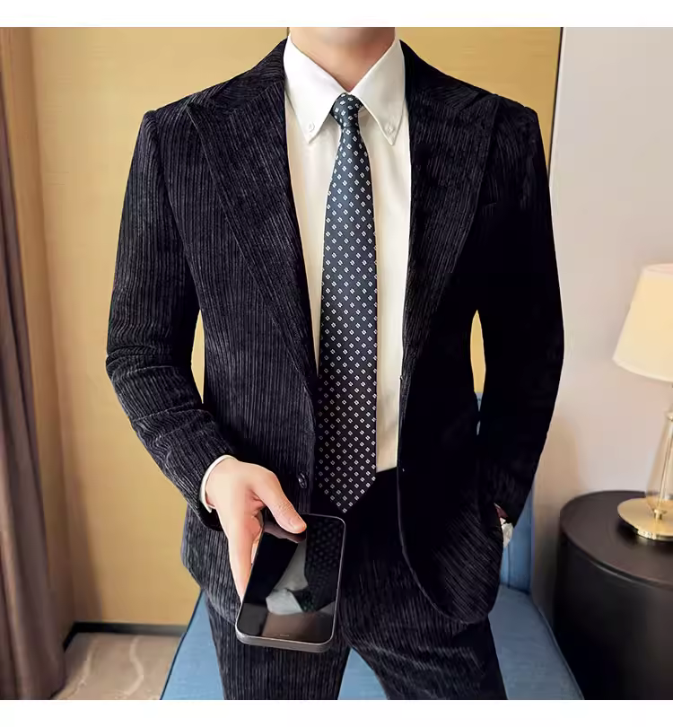 - Vest nam chất liệu nhung dày, kiểu dáng lịch lãm, thu đông 2024, mới, cao cấp, ôm dáng, lịch lãm.