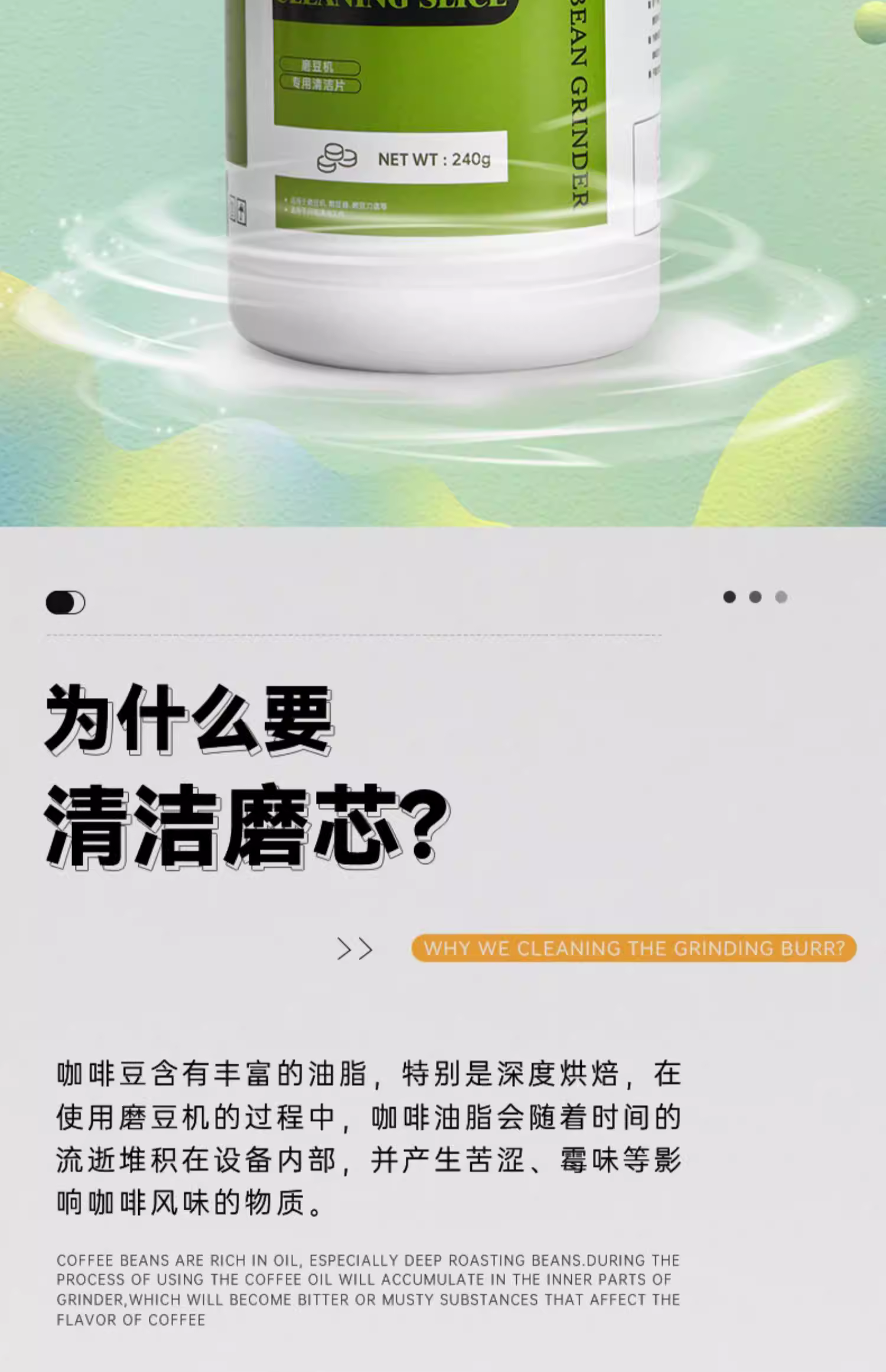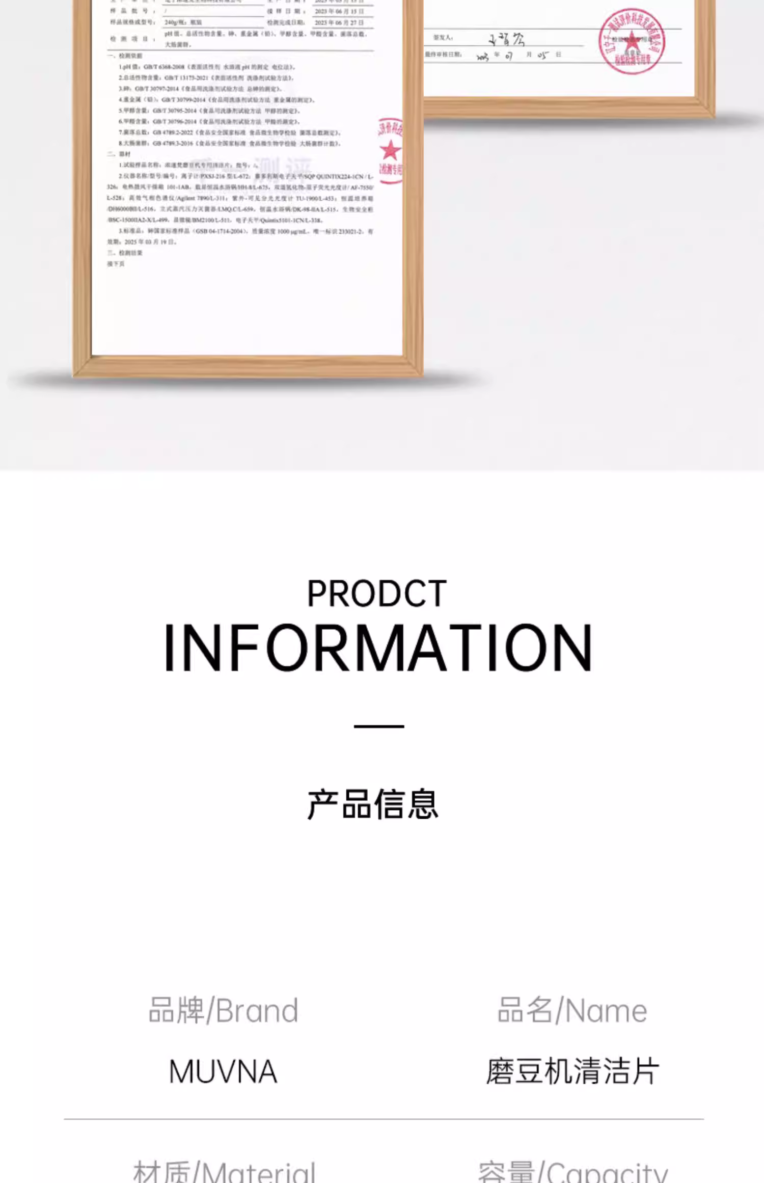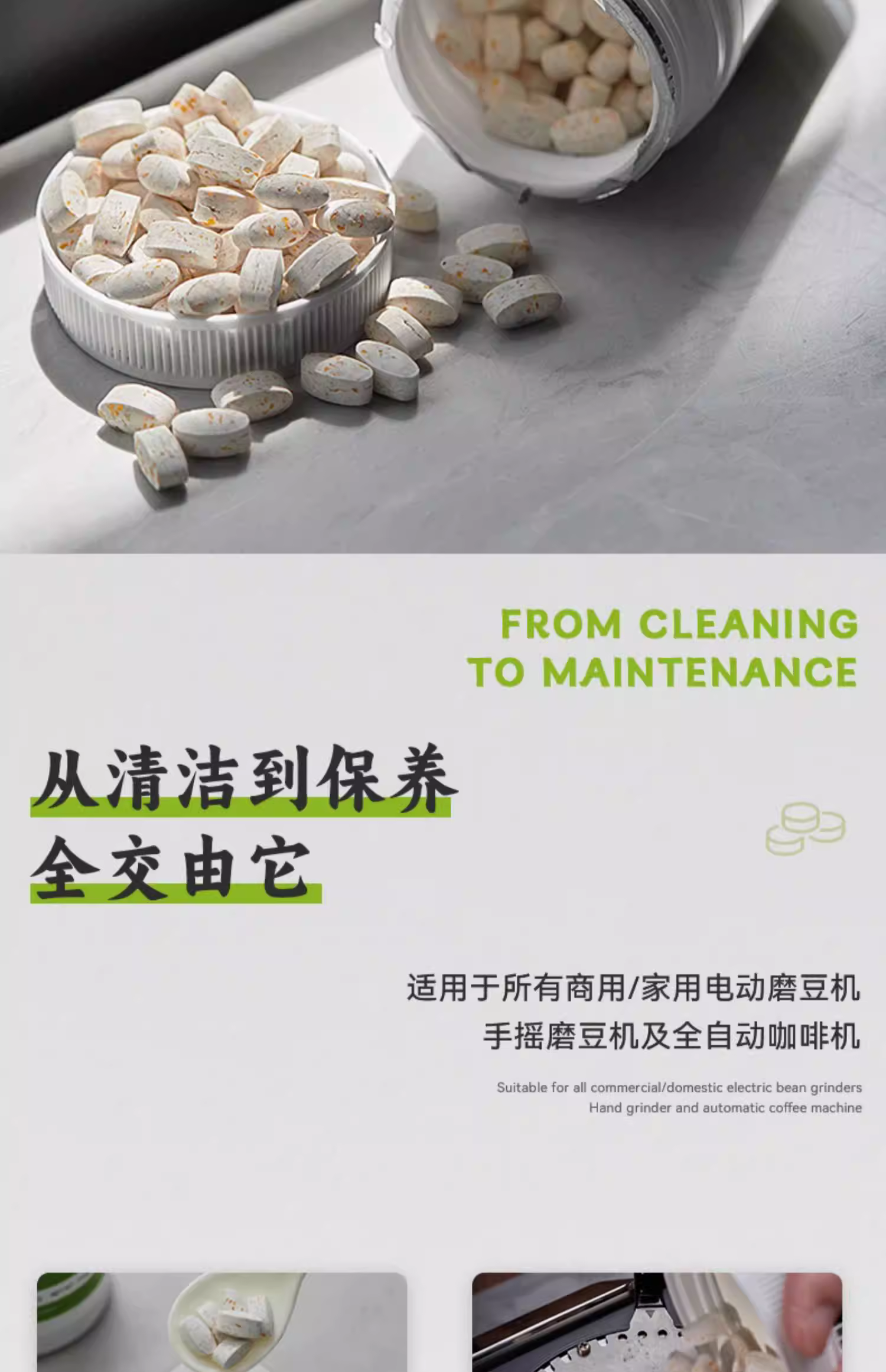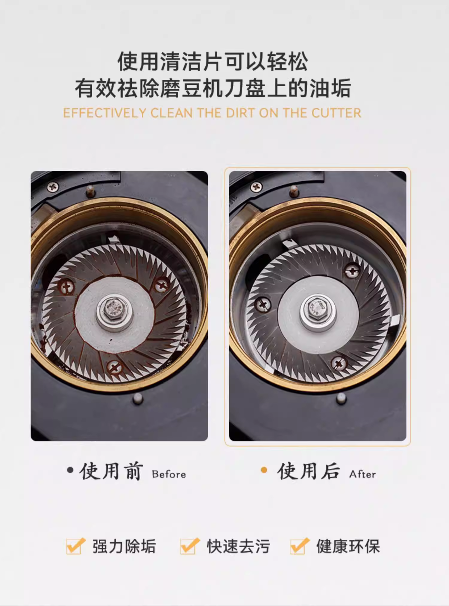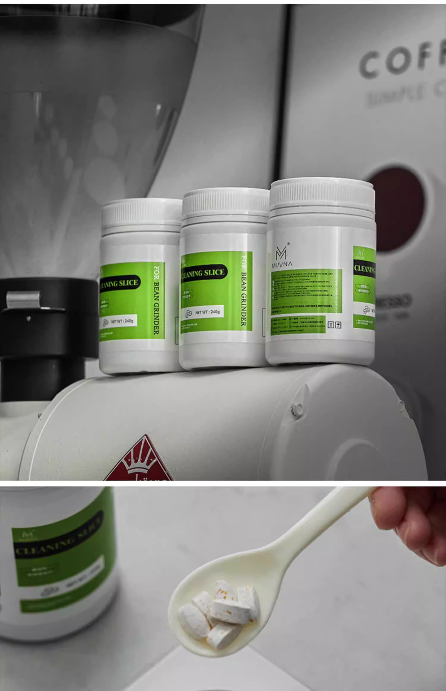 - Viên vệ sinh máy xay cà phê MUVNA, chất tẩy rửa để làm sạch đĩa và lưỡi xay, loại bỏ bụi bẩn và cặn bẩn.