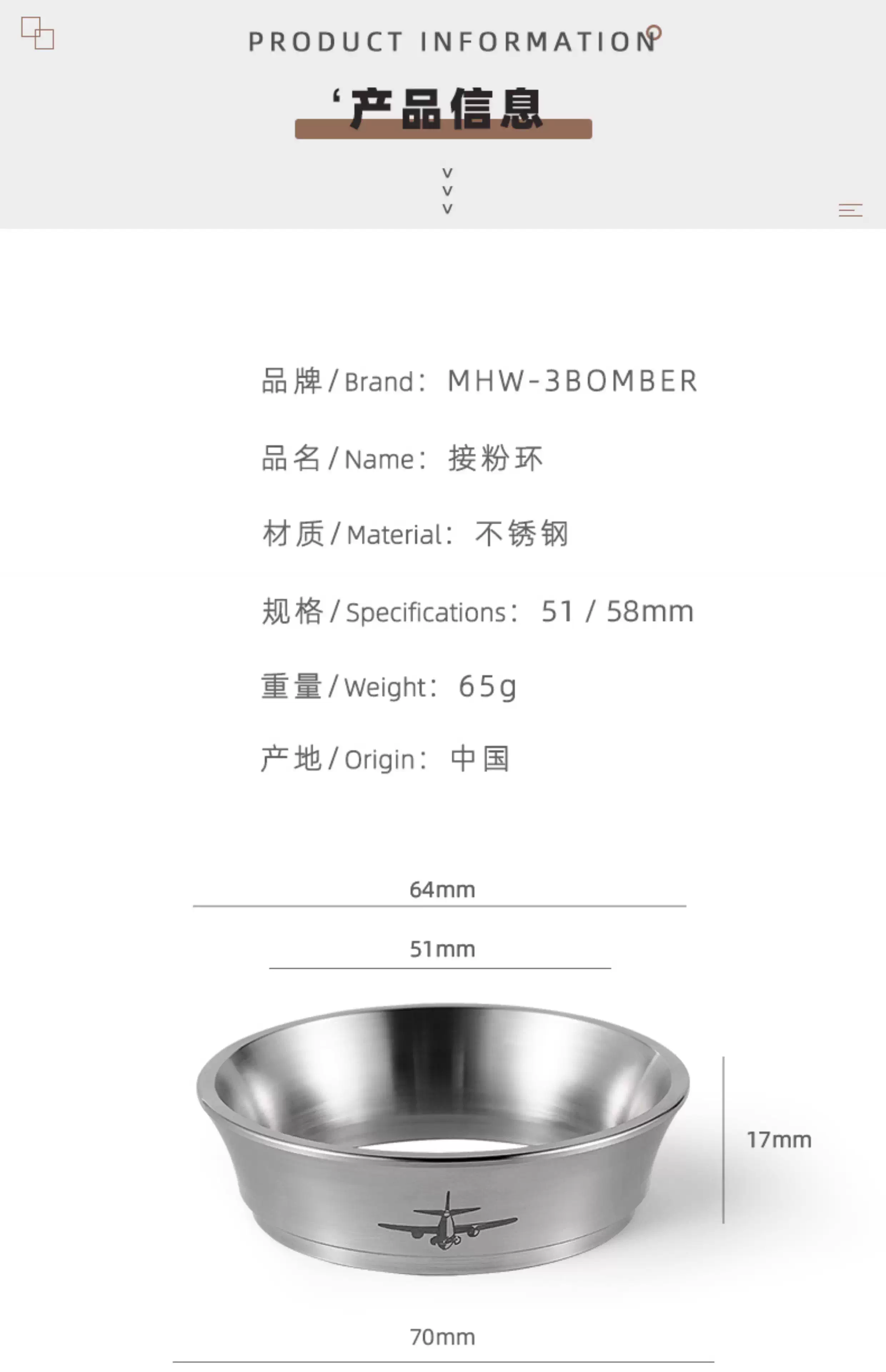 - Vòng phân phối bột máy pha cà phê 51/58MM, tay cầm bằng thép không gỉ 304, vòng chống bắn bột, chống tràn