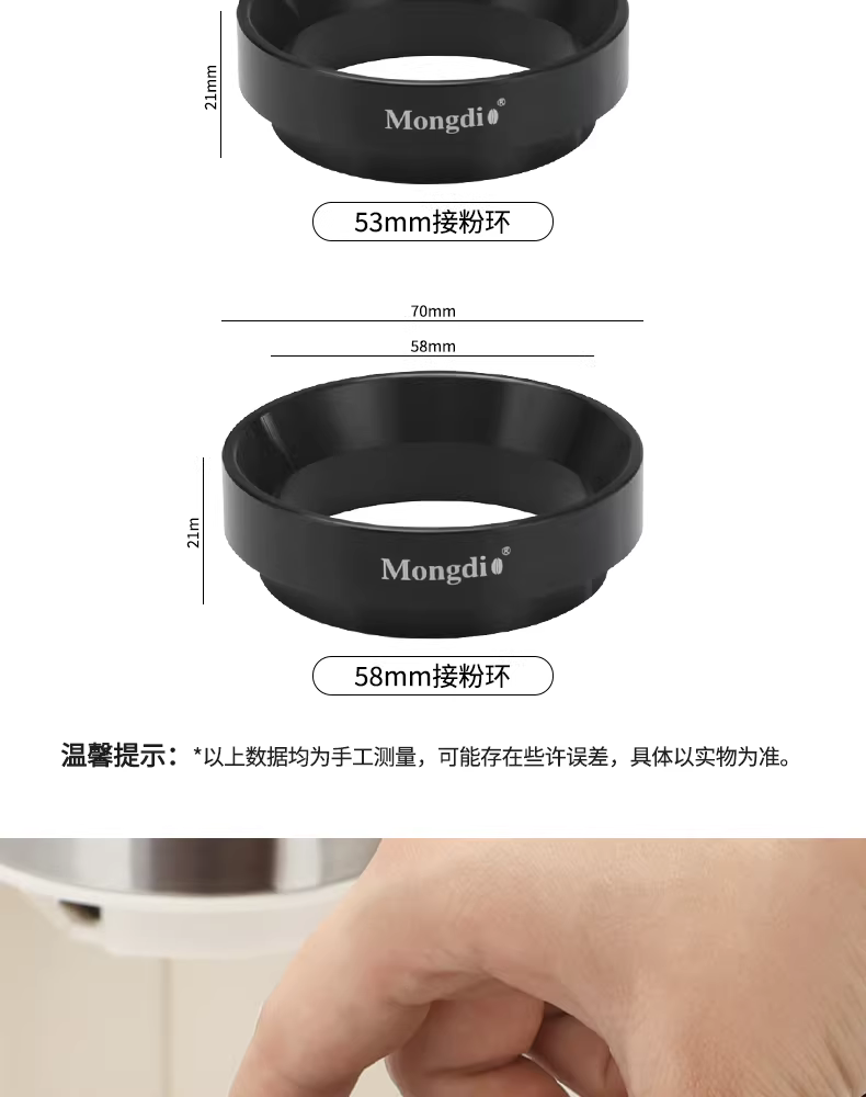 Vòng thu bột cà phê Mongdio có bộ thu bột từ tính, vòng chống bay bột, tay cầm máy pha cà phê 51/58mm