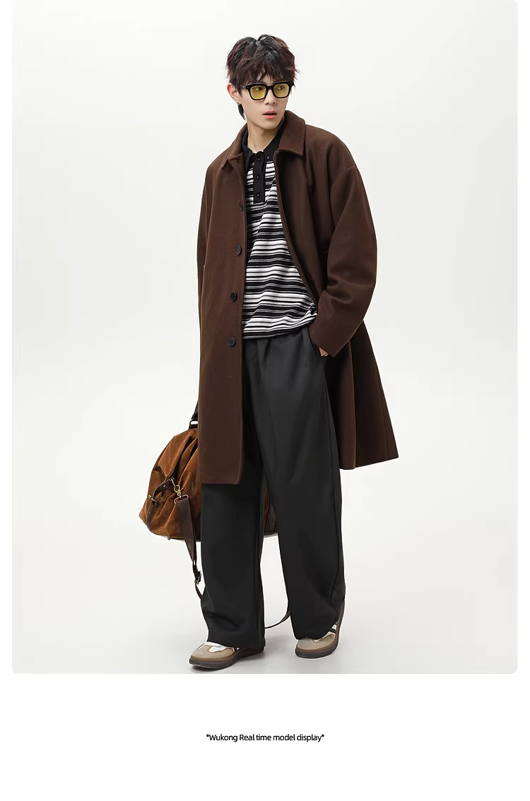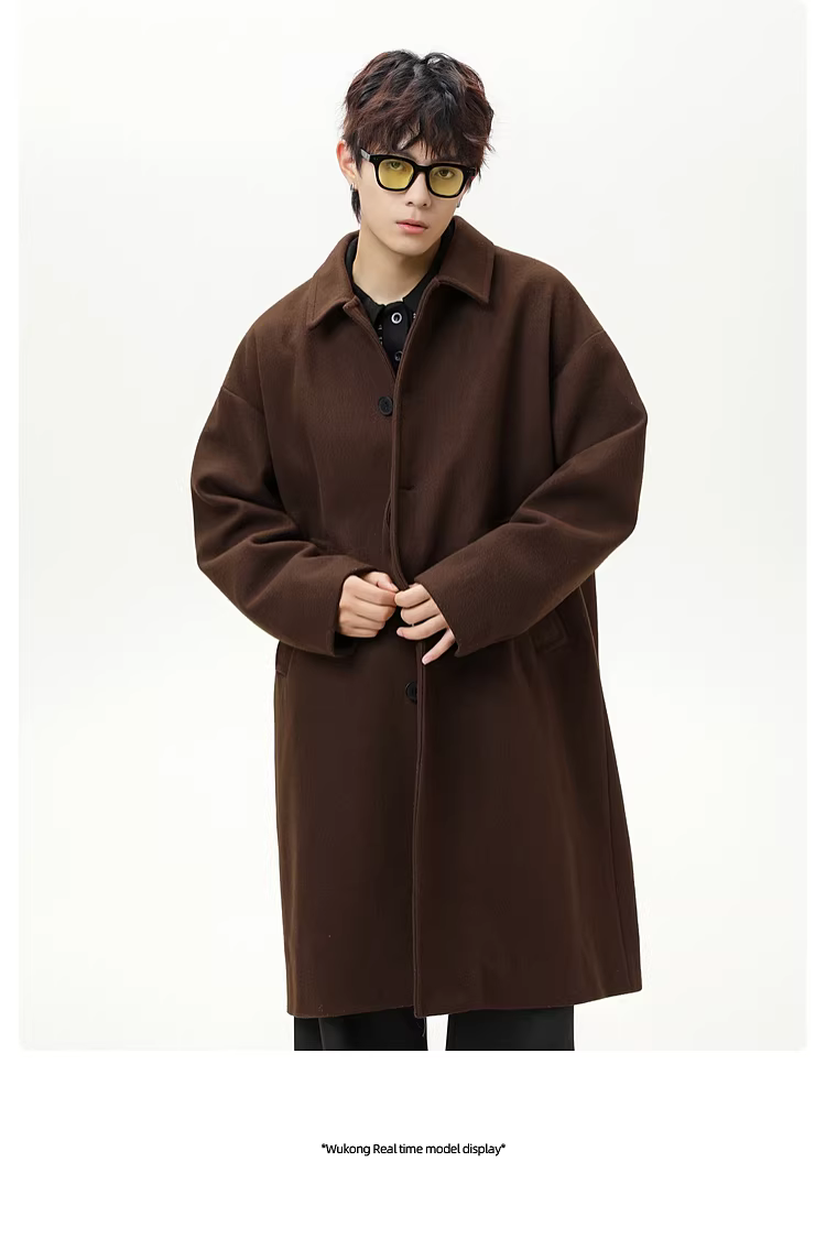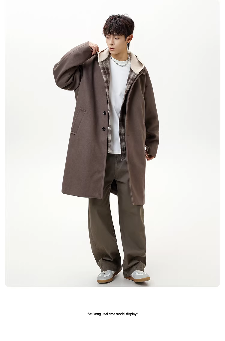 Wukong có sẵn áo khoác len dài trung bình màu trơn cao cấp kiểu cổ điển dành cho nam và nữ, mùa thu đông, dáng rộng, áo khoác đôi đa năng.