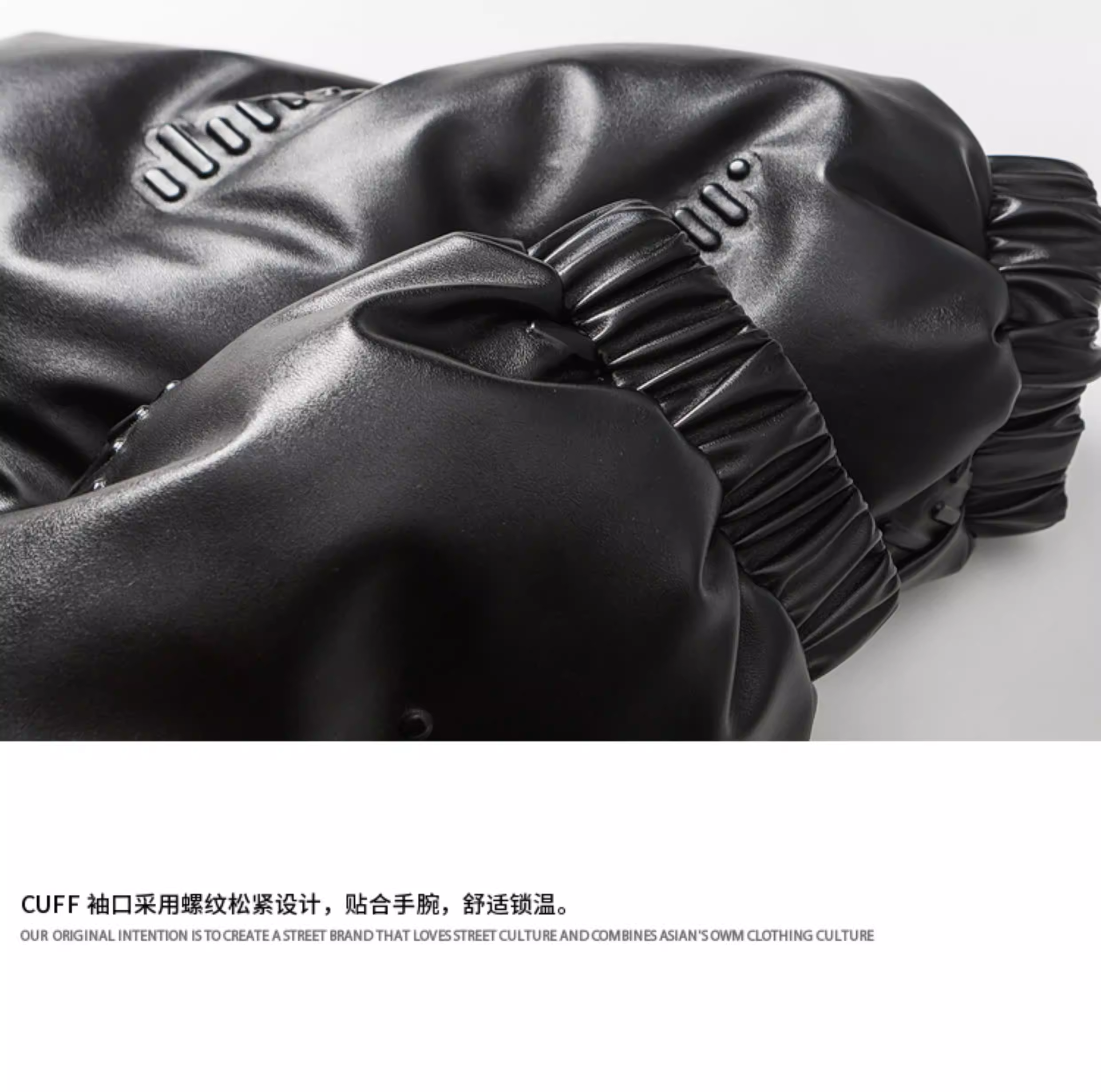 Wukong có sẵn áo khoác phao cổ đứng chống gió giữ ấm mùa đông bằng da PU dành cho nam, thương hiệu thời thượng, dáng rộng, kiểu đôi, đa năng, áo khoác cotton dày dặn.