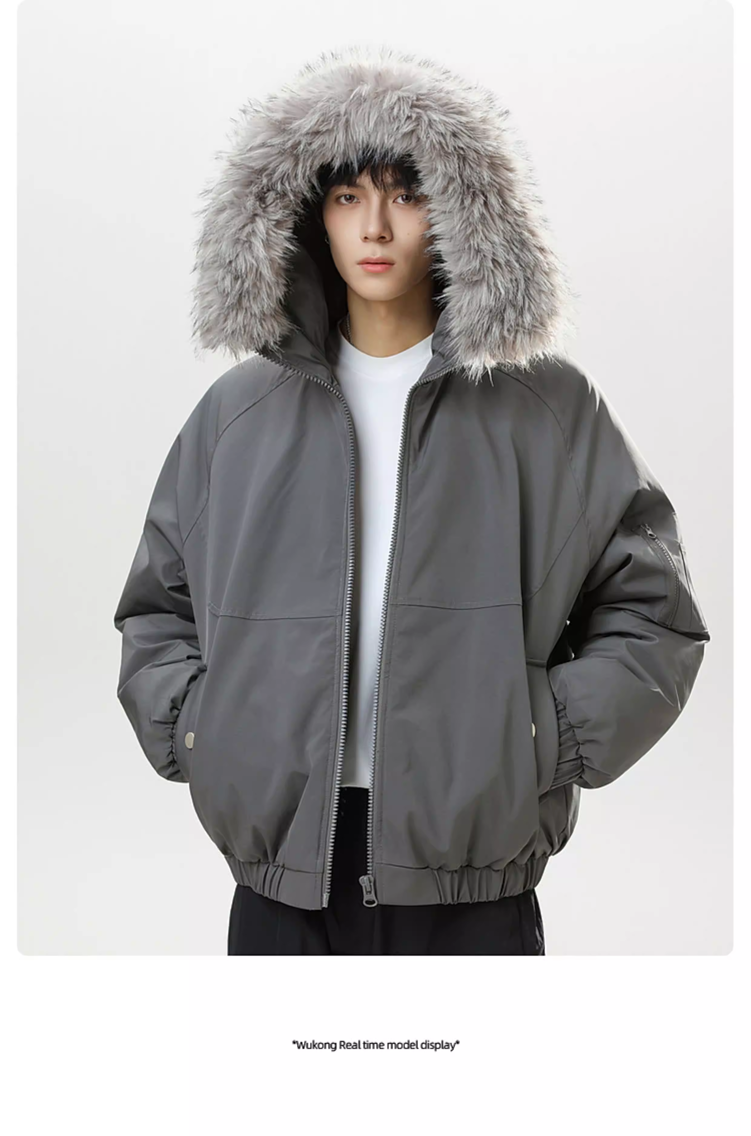 Wukong có sẵn áo khoác phao dày cổ lông thời trang mùa đông dành cho nam, phong cách retro Mỹ, ấm áp và đa năng.