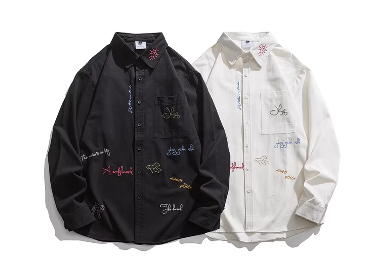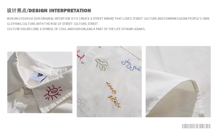- Wukong có sẵn áo sơ mi dài tay thêu chữ đơn giản, kiểu dáng thời thượng dành cho nam và nữ, phong cách đường phố cổ điển, áo sơ mi rộng rãi kiểu BF, phong cách thường ngày.