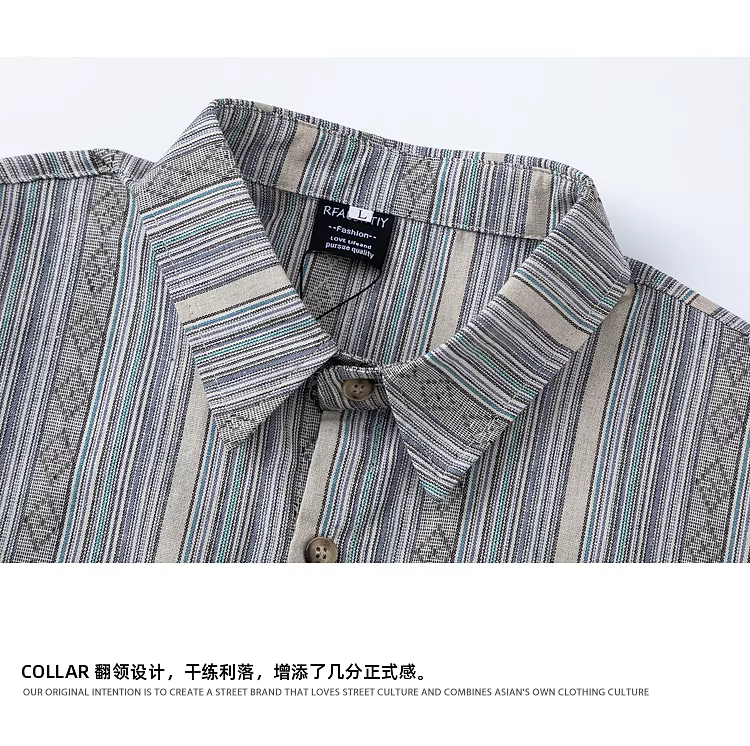 Wukong có sẵn áo sơ mi nam tay ngắn sọc dọc phong cách dân tộc Nhật Bản cổ điển, chất liệu có vân, kiểu dáng rộng rãi.